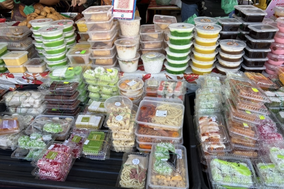 イスラム教の断食月、ラマダンの時期限定で開かれるバザールがラマダンバザールです。ラマダンはイスラム暦に基いており、月の満ち欠けを基準に目視で観測して決められます。よって、年によって、また国や地域によっても開始日に若干のズレが出ることもあるようです。今年2026年のラマダンは、マレーシアでは2月19日に始まりました。ここから約1か月、イスラム教徒の人は日没から日の入りまで飲食を絶ちます。その時期に合わせて開かれるのがラマダンバザールで、ここでは食べ物を売る屋台がズラッと並びます。日の入り後の夕食を求めて多くの人が訪れます。夜からはまたお祈りの時間が始まるので、比較的早く閉まるのが特徴で、17時~18時あたりがバザールのピークです。イスラム教徒以外の人でも誰でも利用できますが、店で買ってその場で飲食するのは控えましょう。バザールの開いている時間はまだムスリムの人は断食中のため、尊重と配慮のため家に持ち帰って食べるのがよいです。