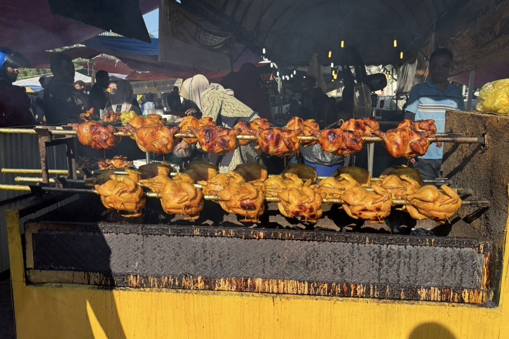 ここではおもにスパイスで味付けして焼いたチキンを扱っている様子。マレーシアで一番メジャーな肉といえば鶏肉で、バザールにもたくさんの鶏肉料理があります。