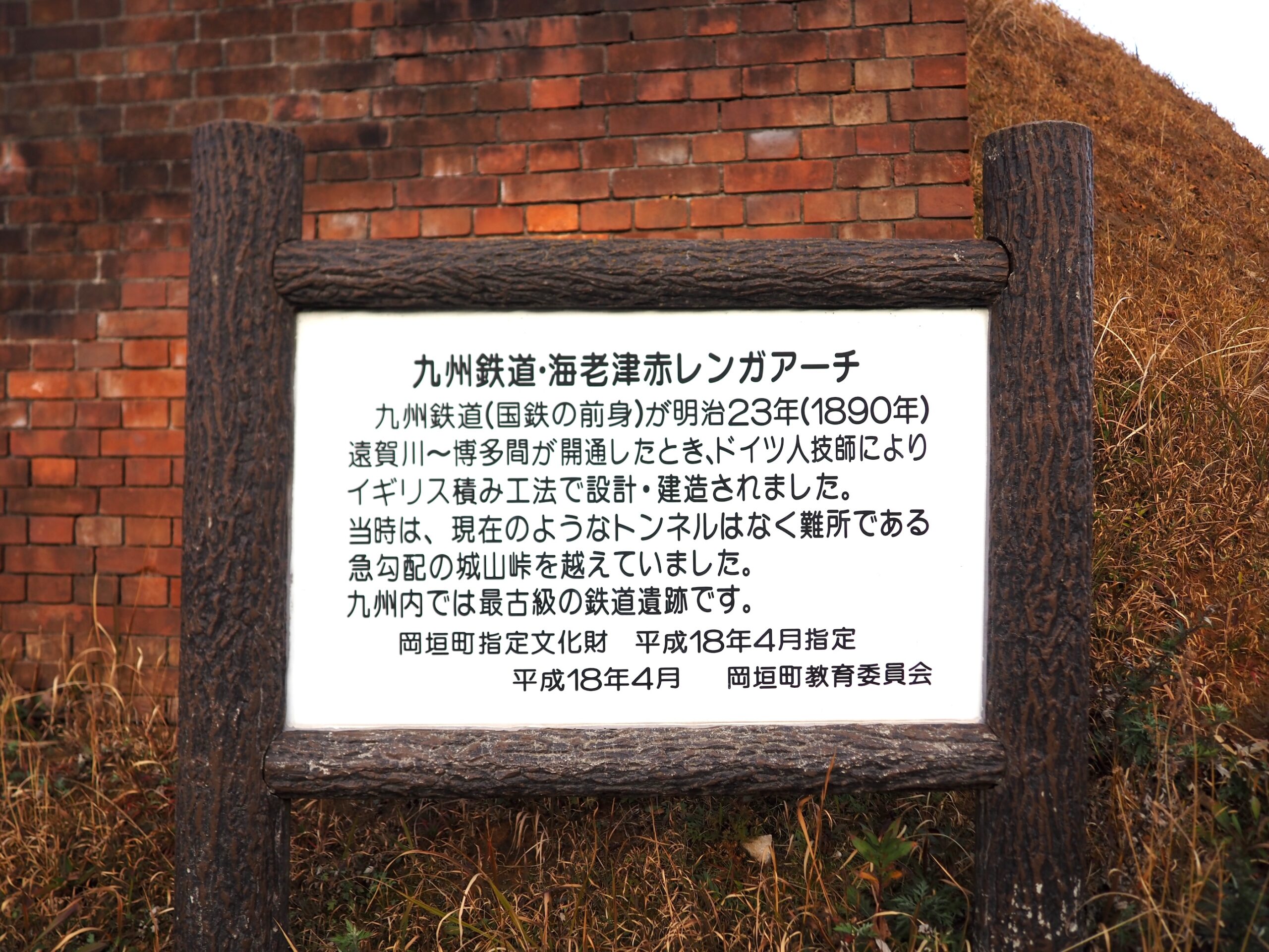 説明版によると、「九州鉄道・海老津赤レンガアーチ」とあります。平成18年4月に岡垣町指定文化財となっています。