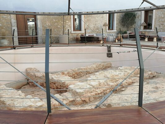 それらの遺跡は、ホテル内に保存されており、ガラスを通してみることができます。イビサのパラドールはホテルであると同時に博物館でもあるのです。
