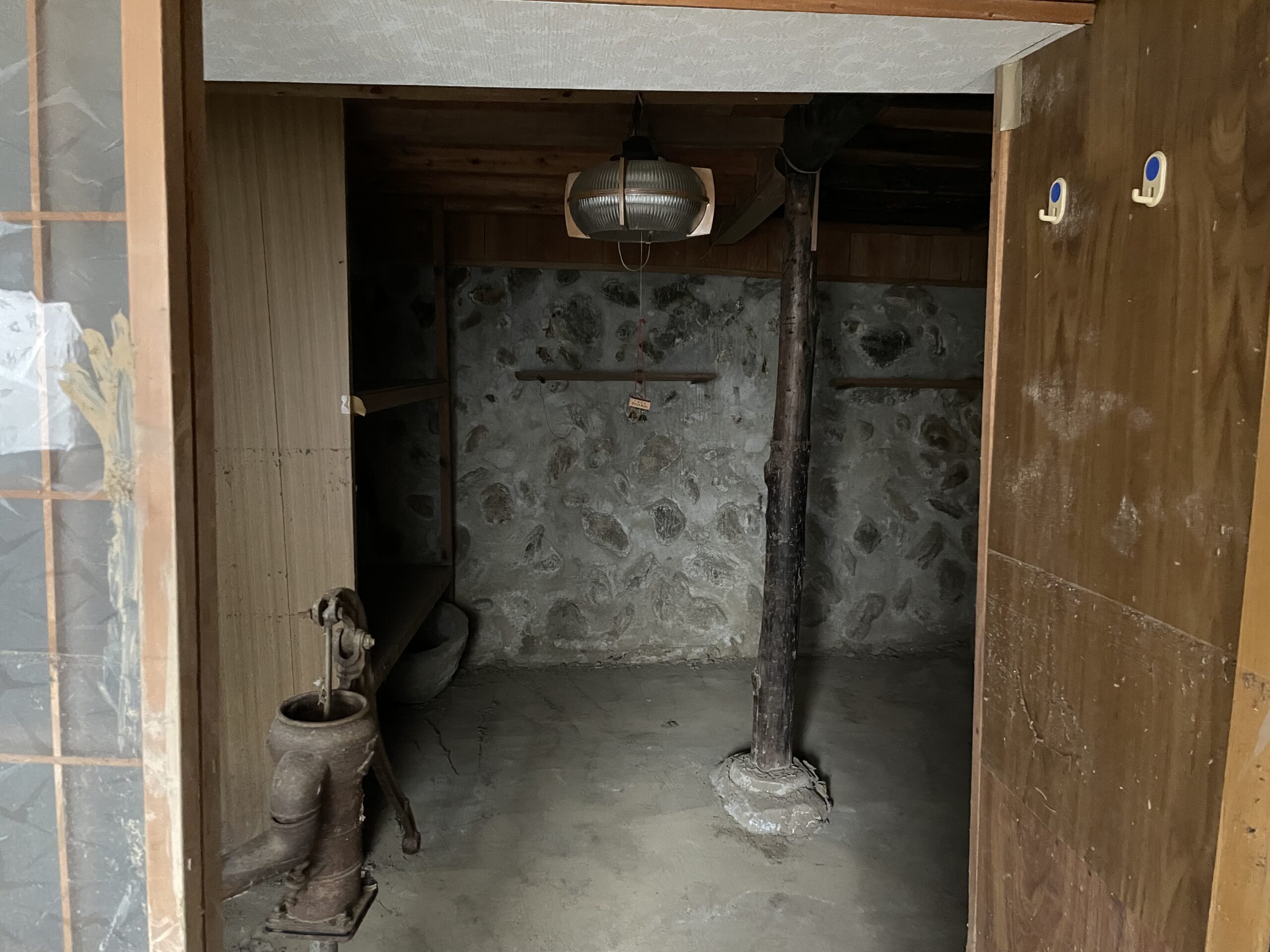 この物件の地下はなかなかホラーな雰囲気がありますよ、とガイドさんに言われ降りてみた地下の様子は撮影した写真をご覧ください。確かに薄暗く、土壁の構造はひんやりとした空気が漂い、雰囲気抜群でした。