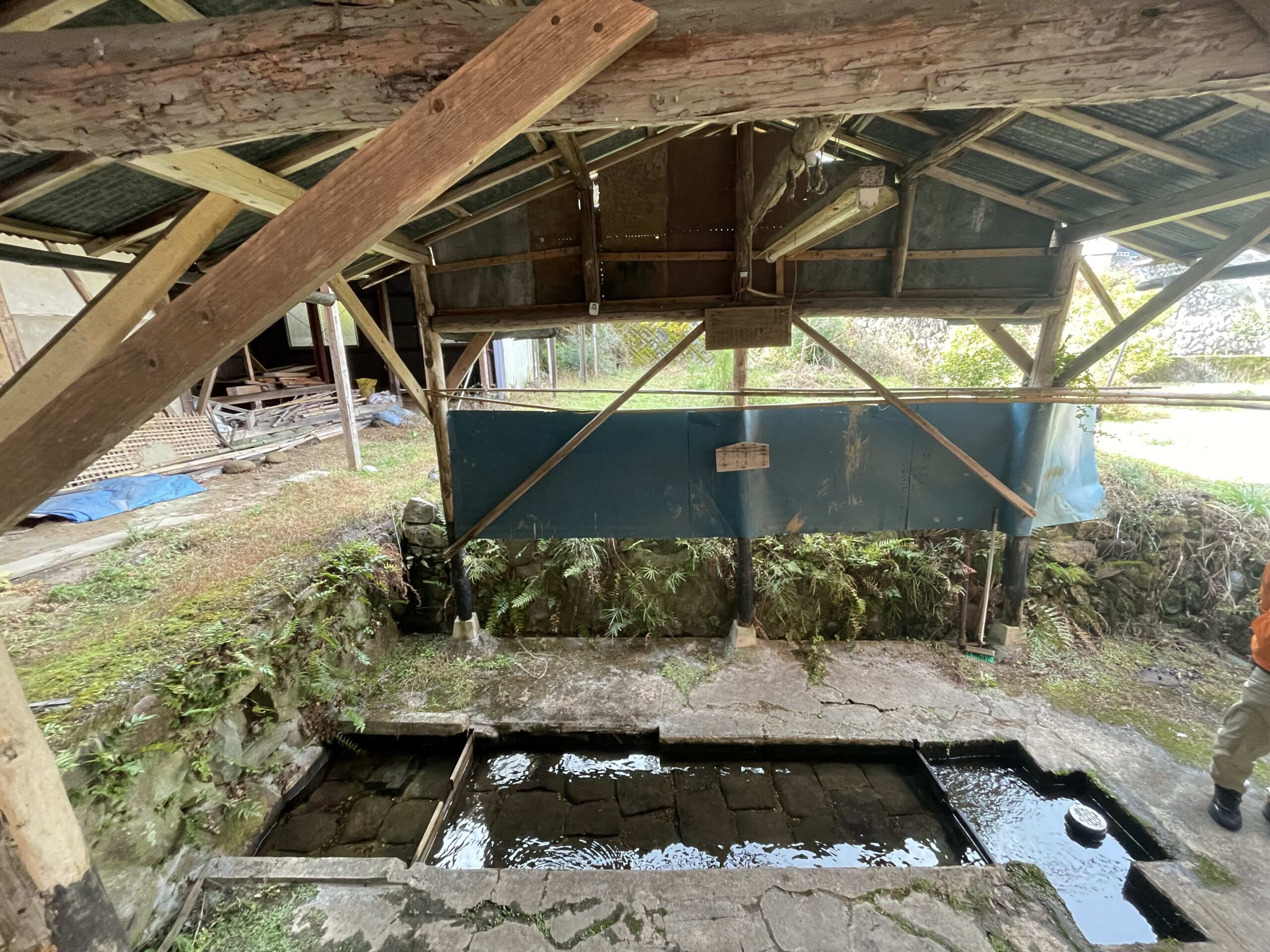 筋骨エリアを歩いていると、道中に水場が多いことが気になりました。なんでもこの地域は非常に水が湧き出る豊かな土地だそうで、今もこの水場を住民の方々が共同で使用しているそうです。また、ガイドさんがこの水場にためられている水を一度栓を抜いて放流してくださり、同時にすぐに地下から湧き出る水で再び水位が戻る様子を見せてくださいました。