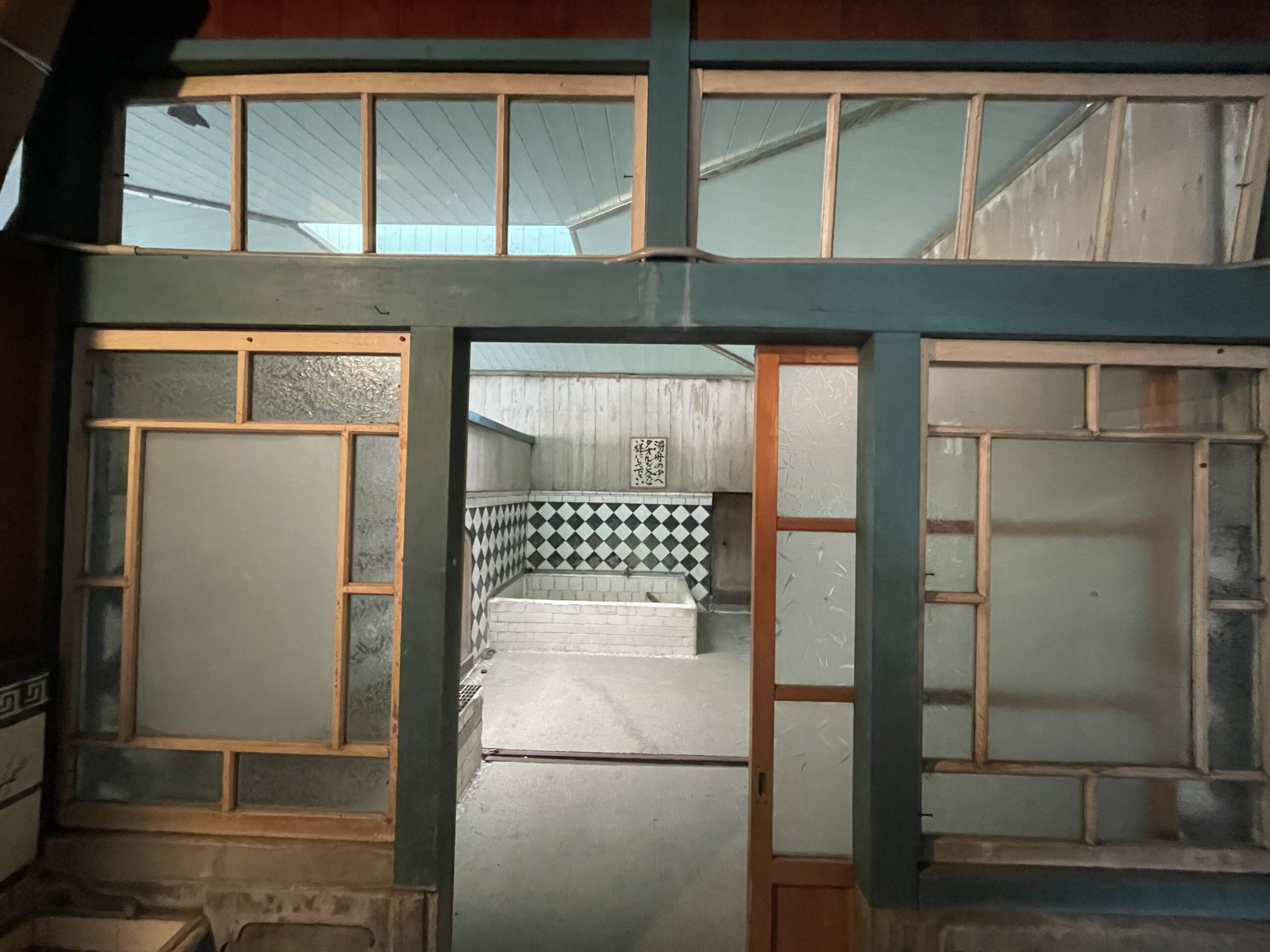 ガイドさんの背中を追って筋骨を歩いていくと、昭和の銭湯が現れました。ここは現在営業しておらず、金山町観光協会のガイドさんをお願いした場合のみ、特別に施設内へ入らせてもらえ、中の様子を見学することができるので、レトロな建築がお好きな方には非常におすすめです。まるで時が止まったかのように、綺麗な保存状態の建物内部が歴史を伝えてくれていました。