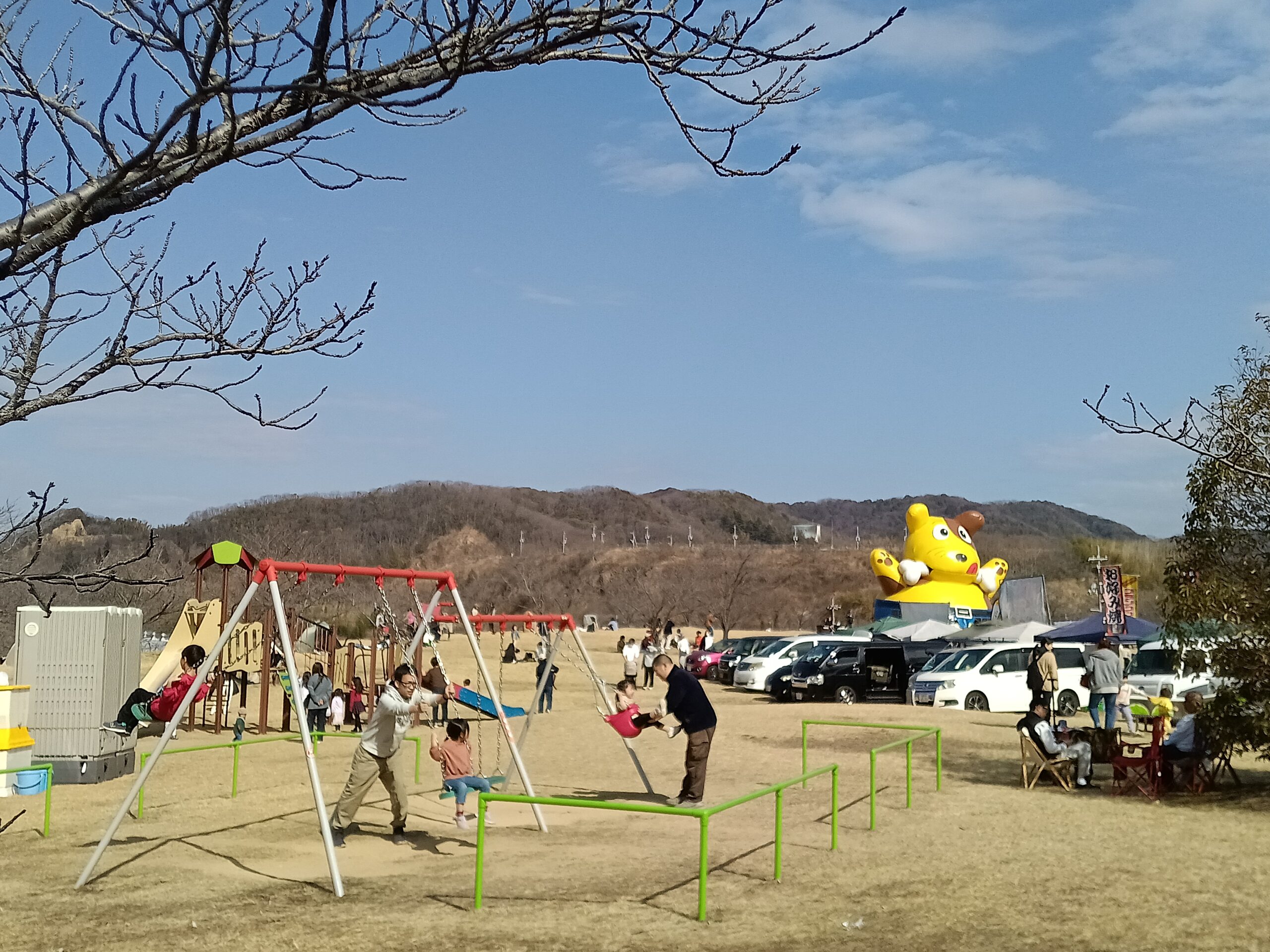 子供たちの歓声が聞こえてきたのは梅園に隣接するモンキーパークと呼ばれる遊具が充実した遊び場です。付近には芝生広場もあり、ボールやバドミントン、ついでにお弁当を持っていけば一日遊べそうです。お財布にも優しいので、小さなお子様連れの家族におススメです。
