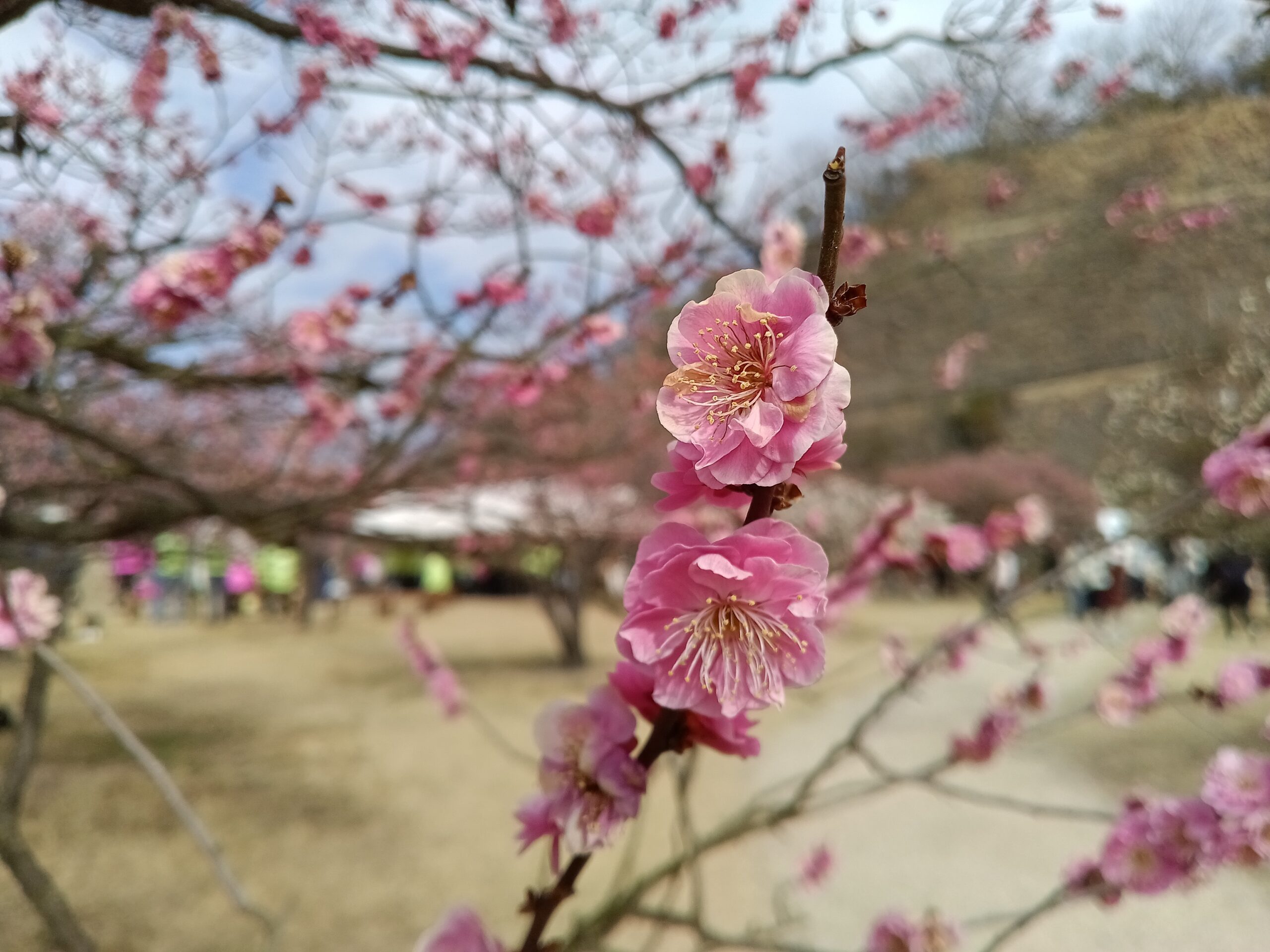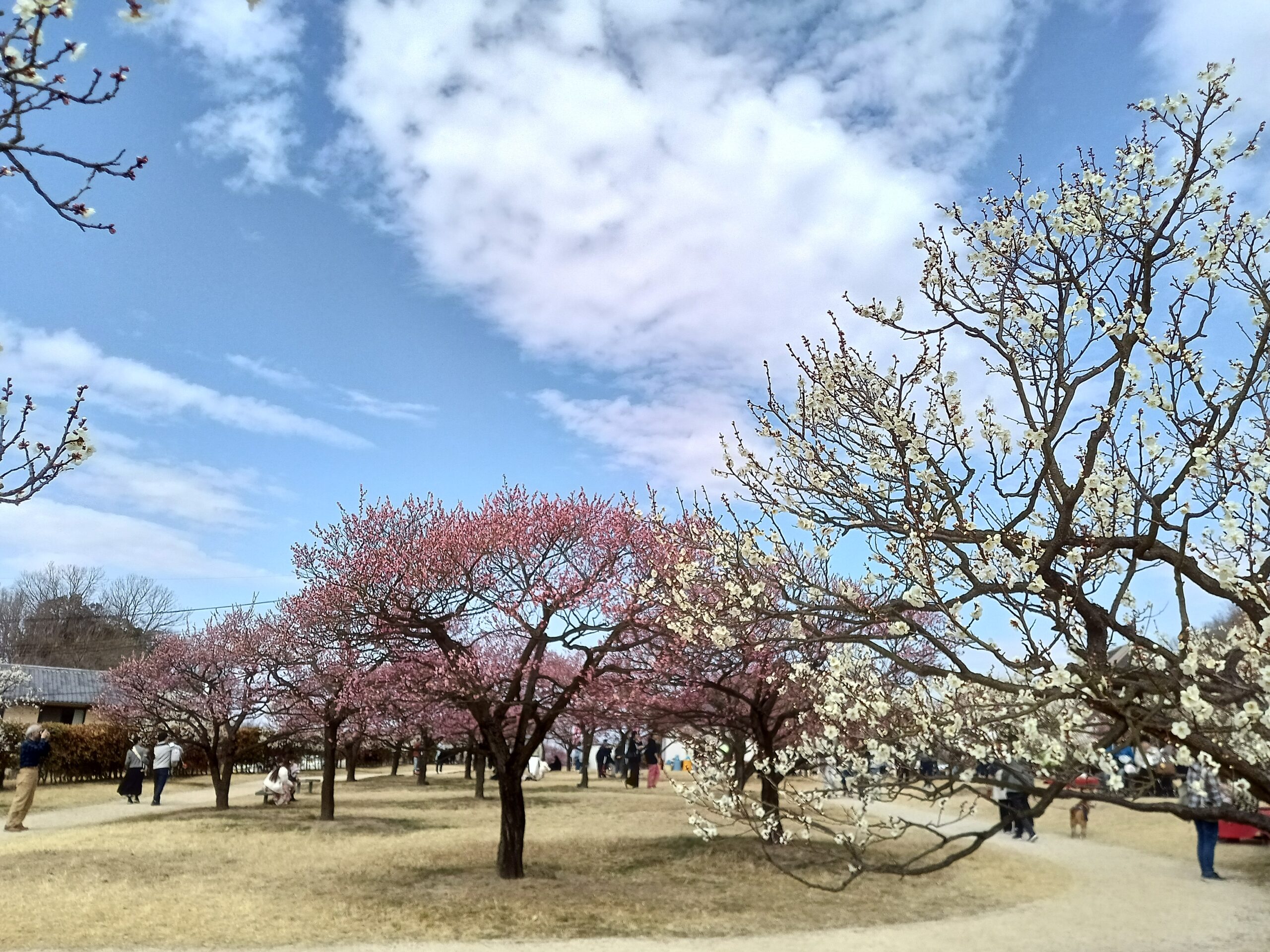 梅園は梅の香りに包まれ、まさに花盛りですが、紅梅はすでに終わりかけです。