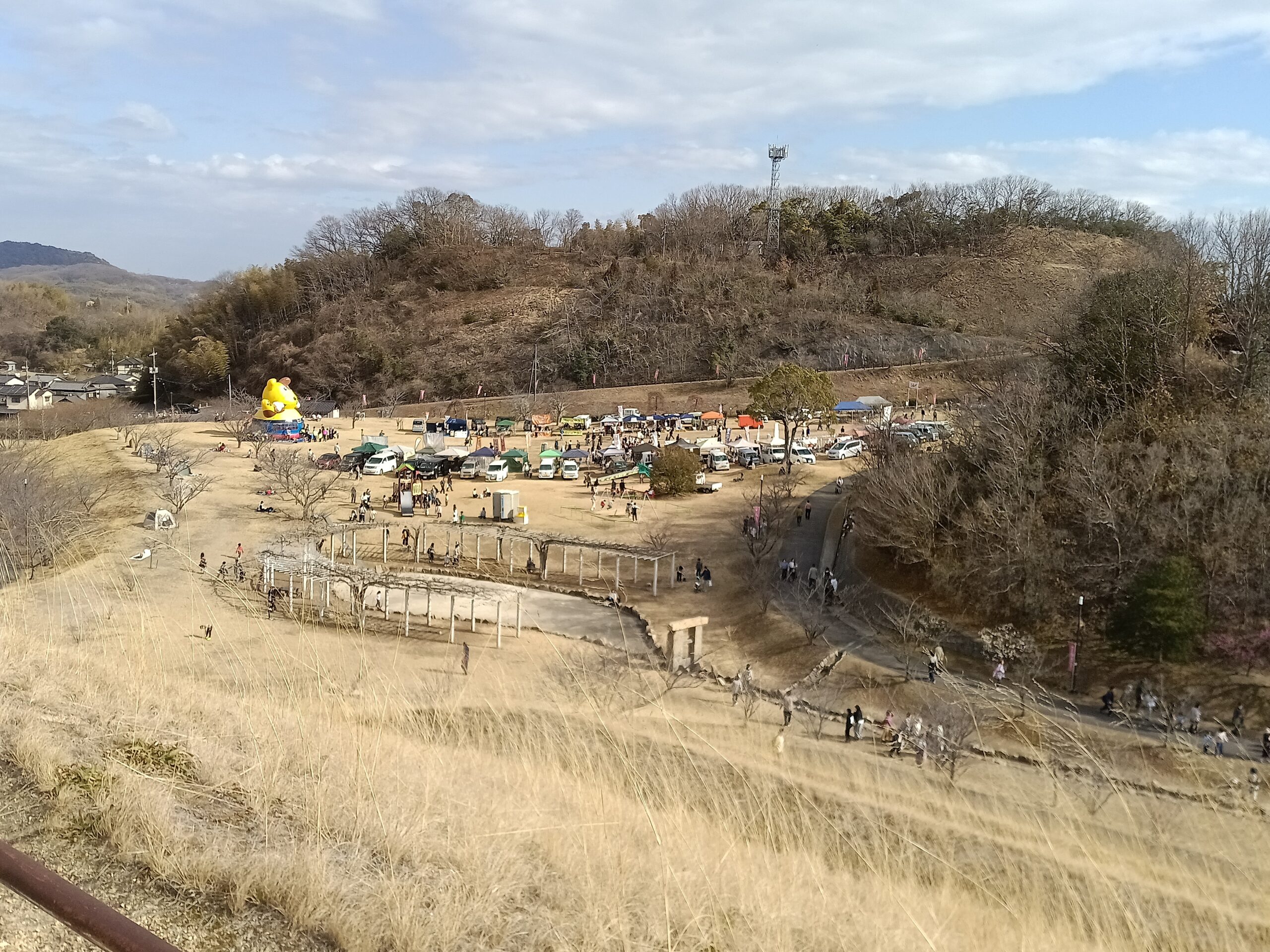 前方に見えるのは、一見古墳のようにも見えますが展望台です。せっかくなので登ってみますが、結構きつい階段でした。