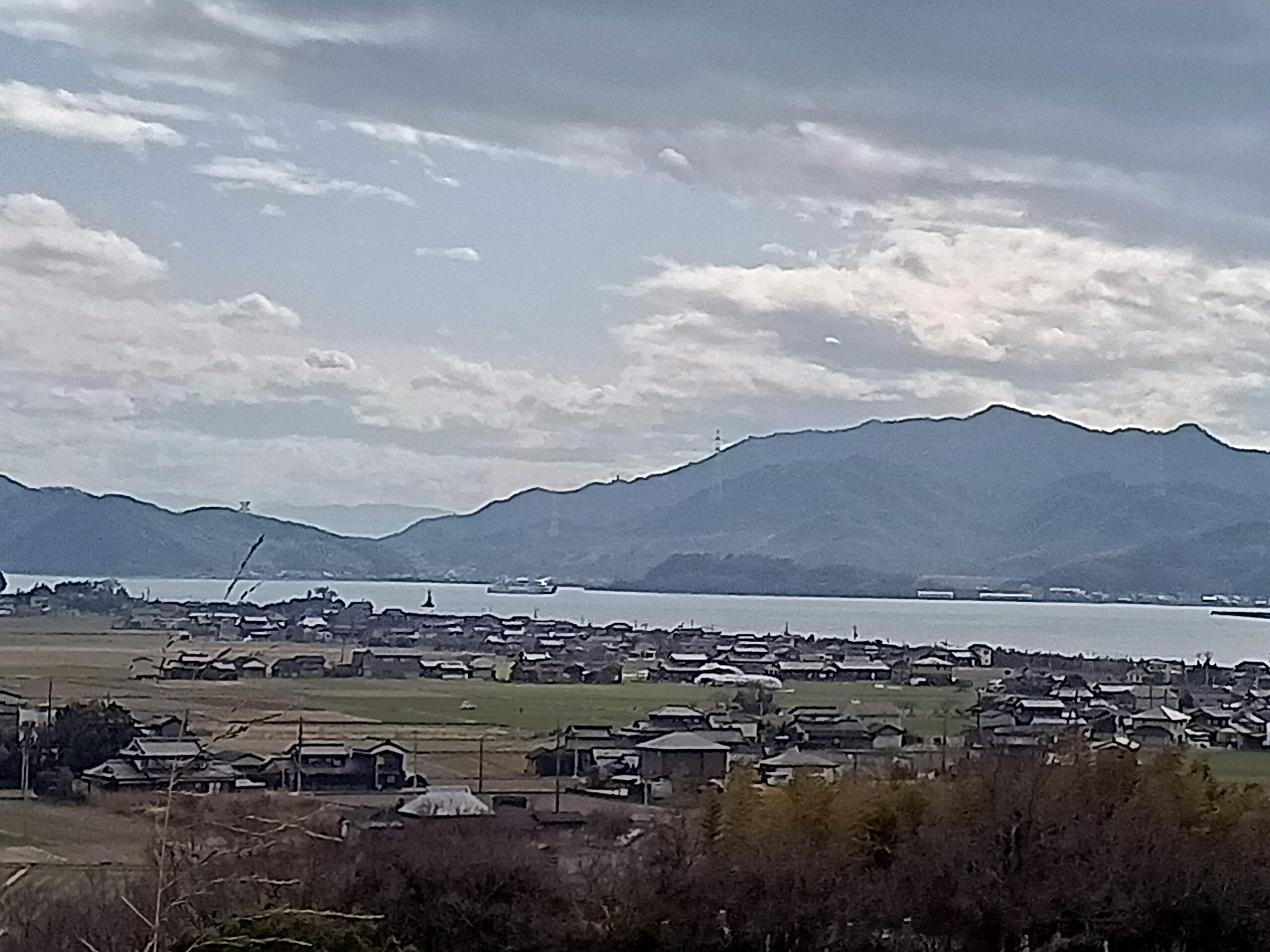 下の地図を見るとわかっていただけると思いますが、千町川は吉井川に流れ込み、さらに吉井川は児島湾に流れ込みます。児島湾を航行するのは小豆島へ向かうフェリーだと思います。