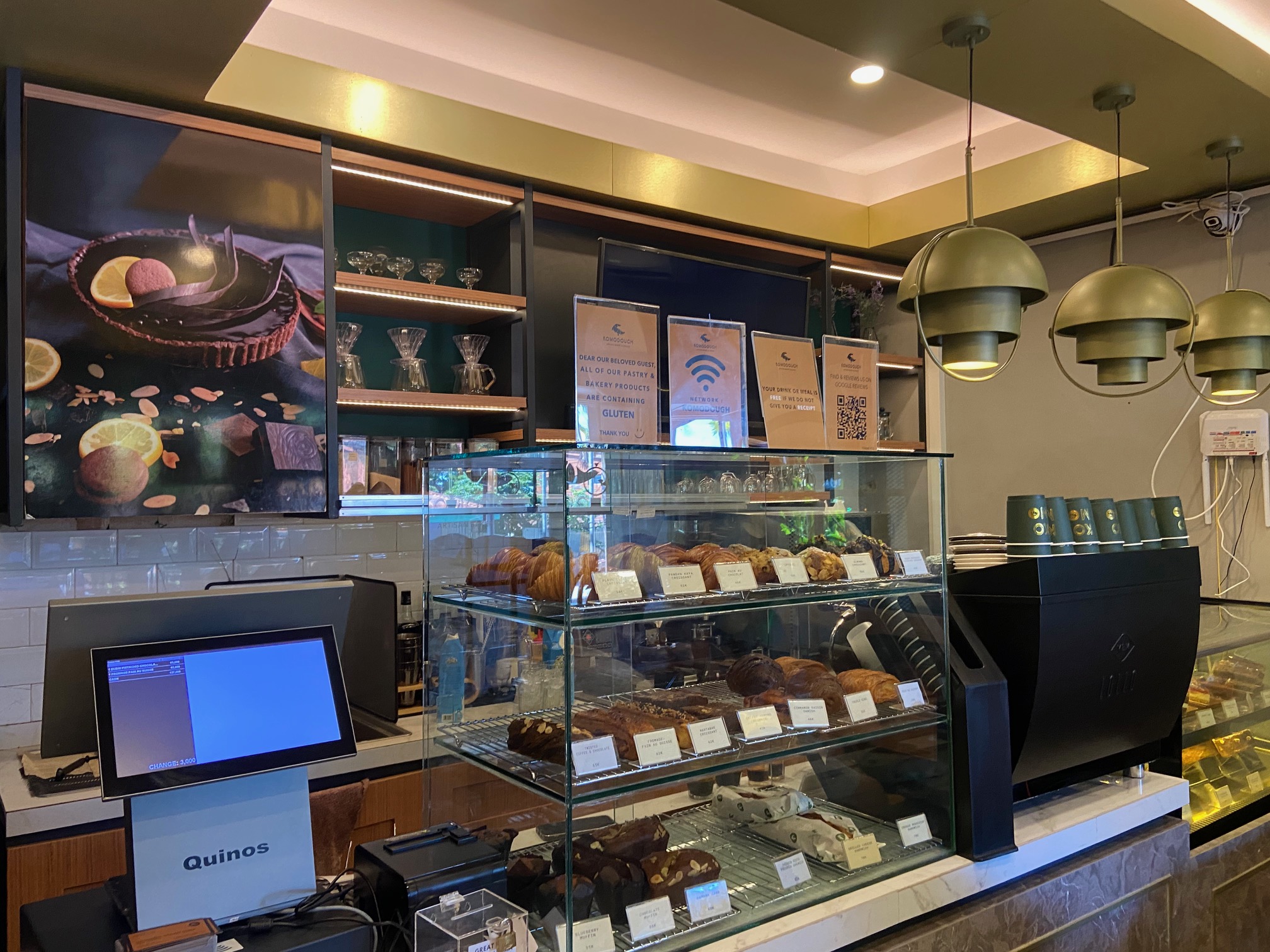 センスの良いお洒落なカフェで、バリスタ用の本格的な器具が目を引きます。