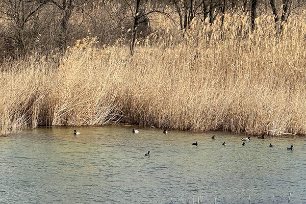 緑色の頭が印象的なMallard(マガモ)。日本でもよく見られるカモで、どこか親しみを感じます。また、黒い体に白いくちばしが特徴のEurasian coot(オオバン)もたくさん見られました。よく見ると、さまざまな種類が混じっていたり、雄雌の模様の差をたのしむことができます。池沿いを歩くこともでき、お天気がいい日はとても気持ちが良いです。
