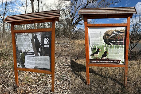 トビリシ中心部からバスで約1時間、郊外にあるPonichala Reserve – Krtsanisi Park。国の保護区域のひとつで、地域住民にも開放されている公園です。バスから降りると、さまざまな鳥がデザインされたゲートがお出迎え。このデザインからも、鳥がよく見られることがわかります。