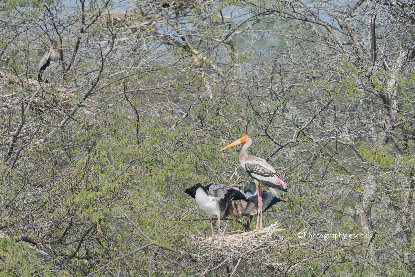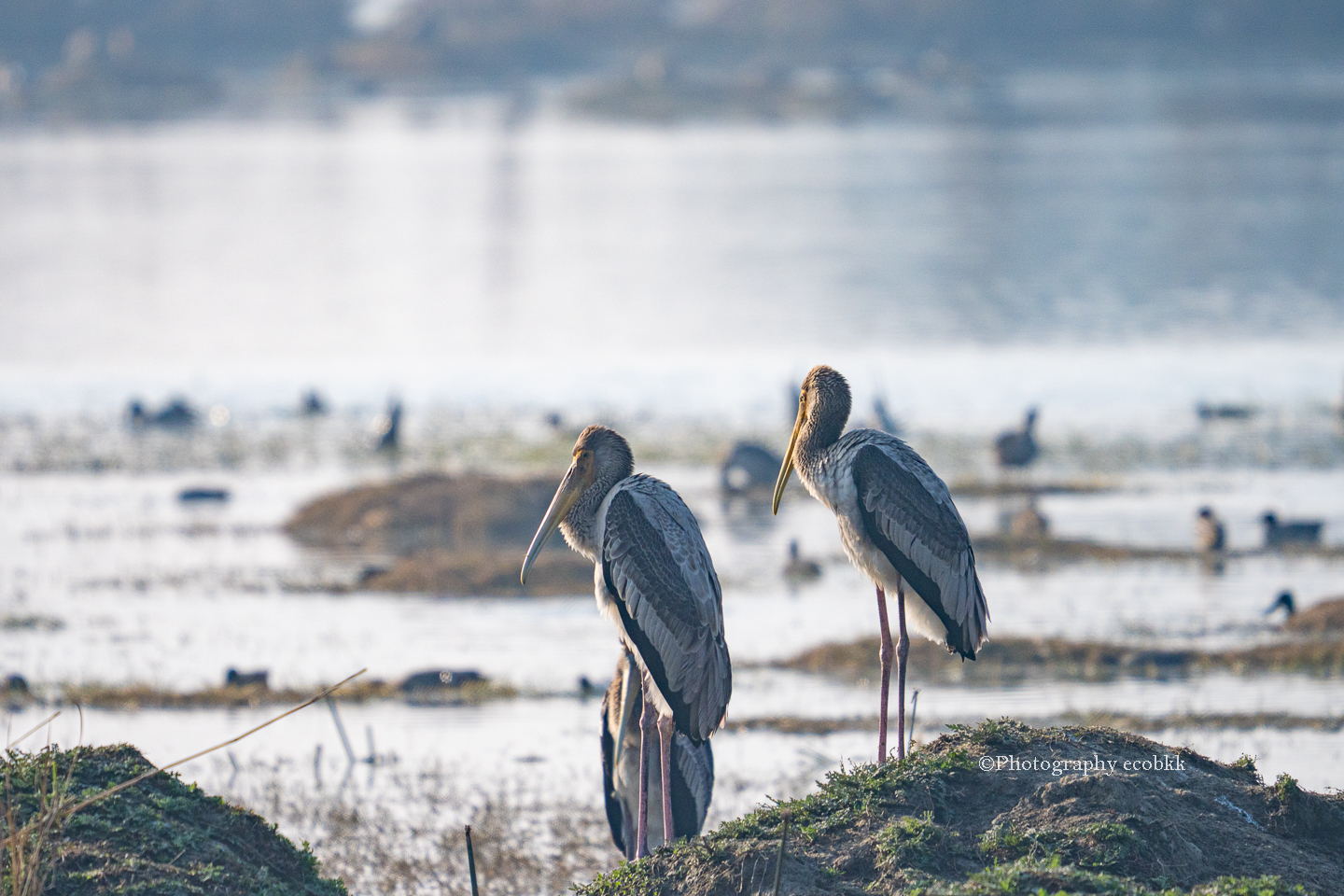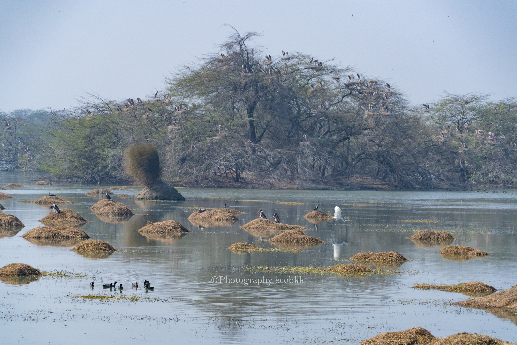 タイのバンプー自然保護地区の一画でも見たことがありましたが、インドのスルタンプール国立公園でも、非常にたくさんの「インドトキコウ」が見られました。木の上には驚く程たくさんのコロニーがありました。シギ類も多く見られました。
