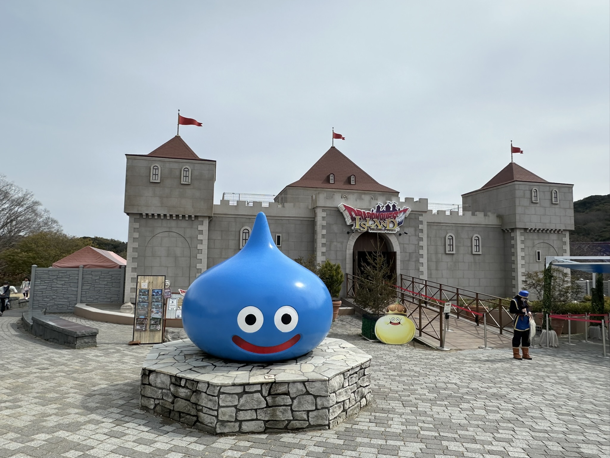 ここは人気ゲーム『ドラゴンクエスト』の世界を体験できるフィールドRPG型アトラクションです。受付でチケットを確認すると、「冒険の書」と専用のリストバンドを受け取ります。