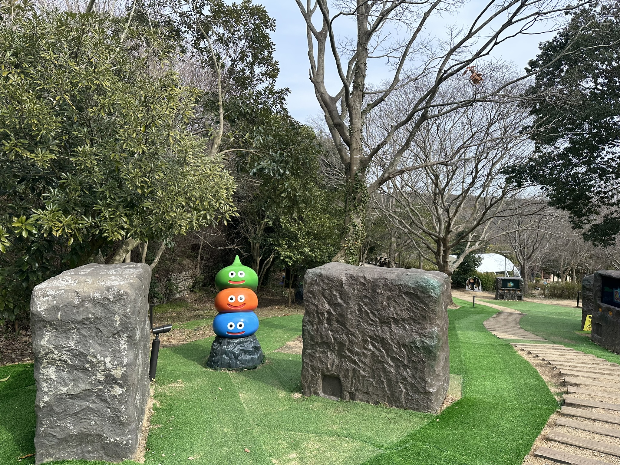 兵庫県淡路島の人気スポット「ニジゲンノモリ」は、ドラゴンクエストやナルト、ゴジラ、クレヨンしんちゃんなど、日本が世界に誇る人気アニメやゲームの世界を体験できる屋外型テーマパークです。広大な自然の中にアトラクションが点在し、園内入場は無料で、遊びたいものだけチケット購入。