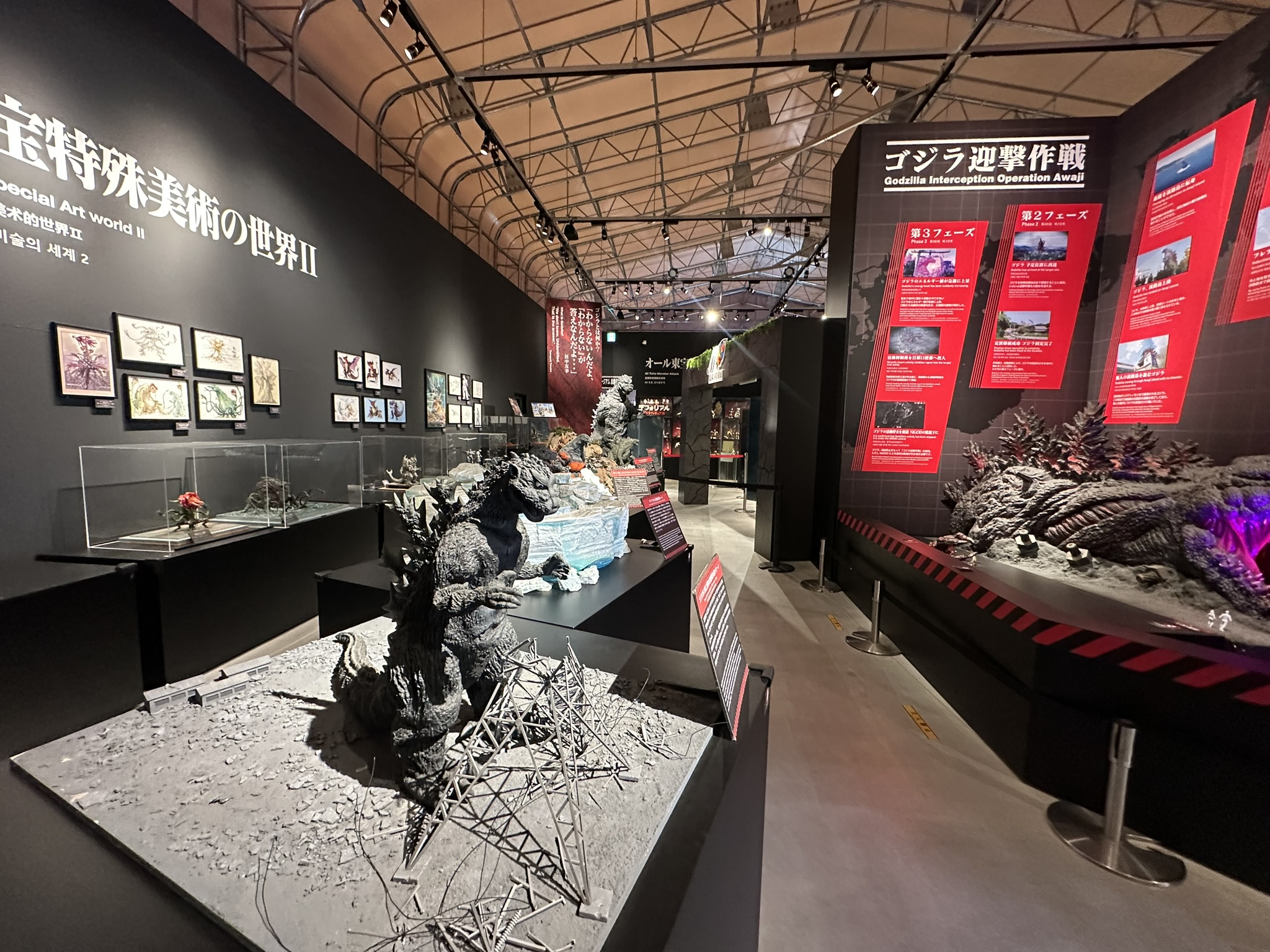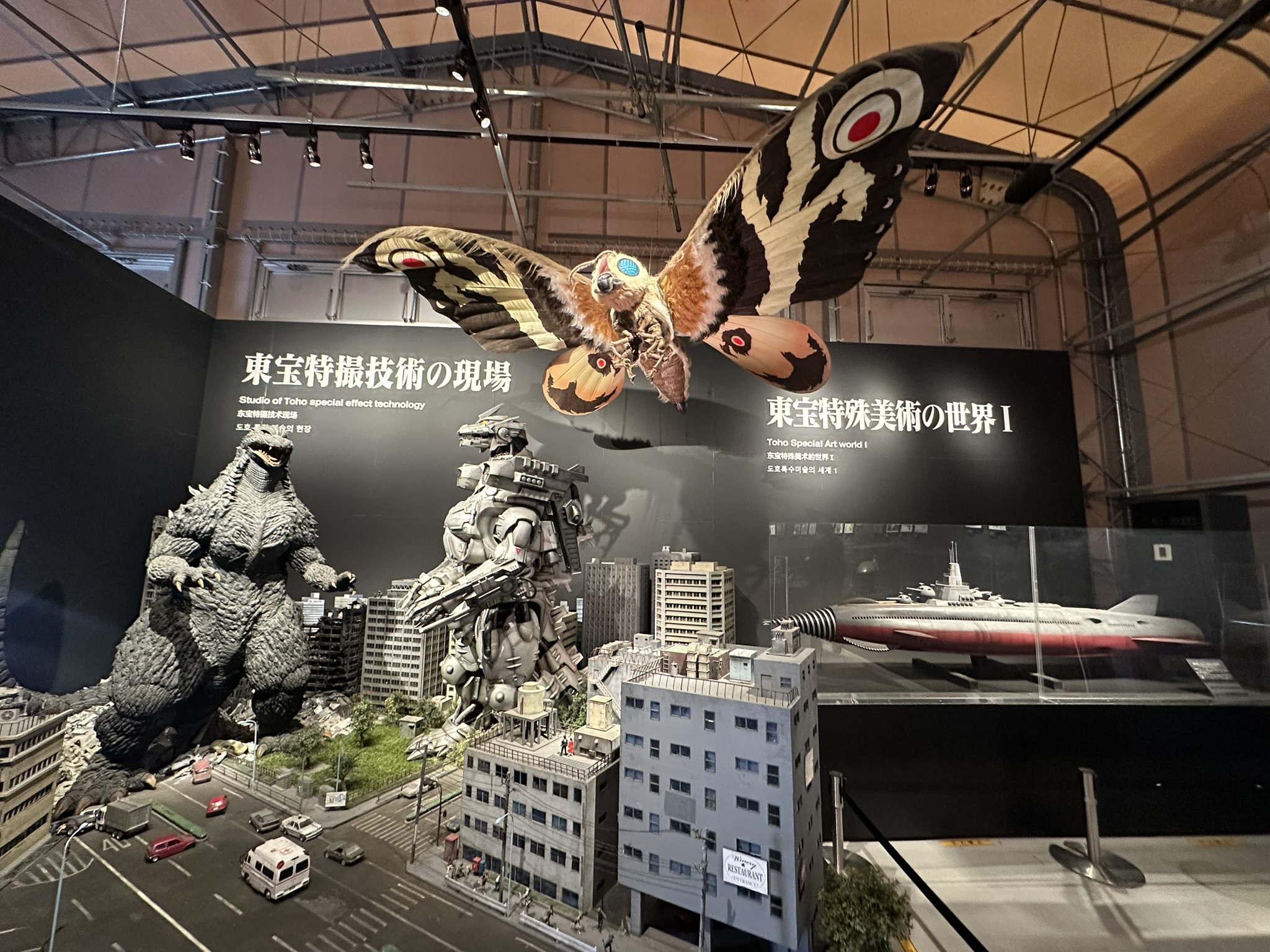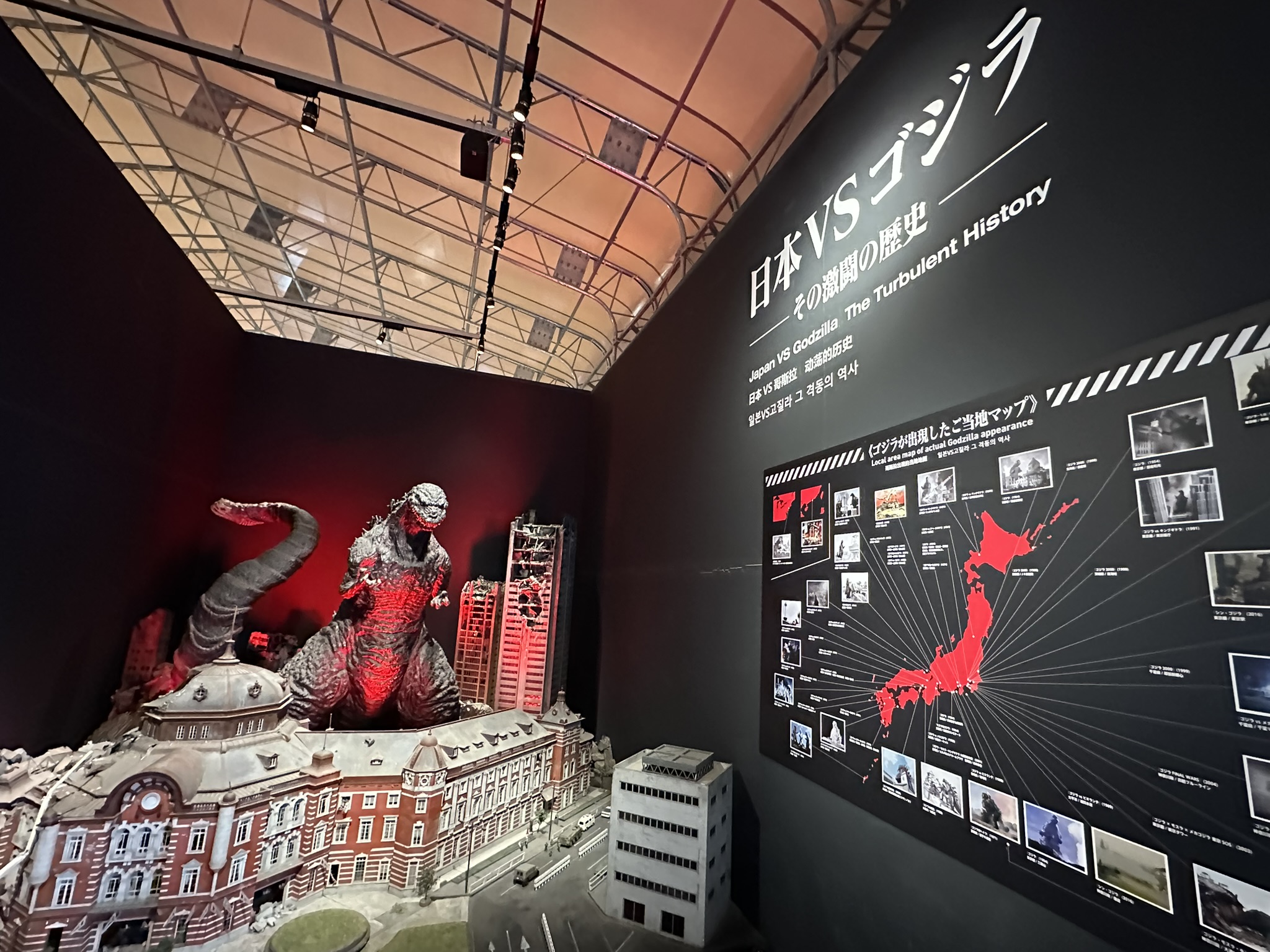 併設のゴジラミュージアムでは、『シン・ゴジラ』(2016年公開)の東京駅での戦いを再現した巨大ジオラマや、モスラをはじめ歴代の怪獣の展示も楽しめます。