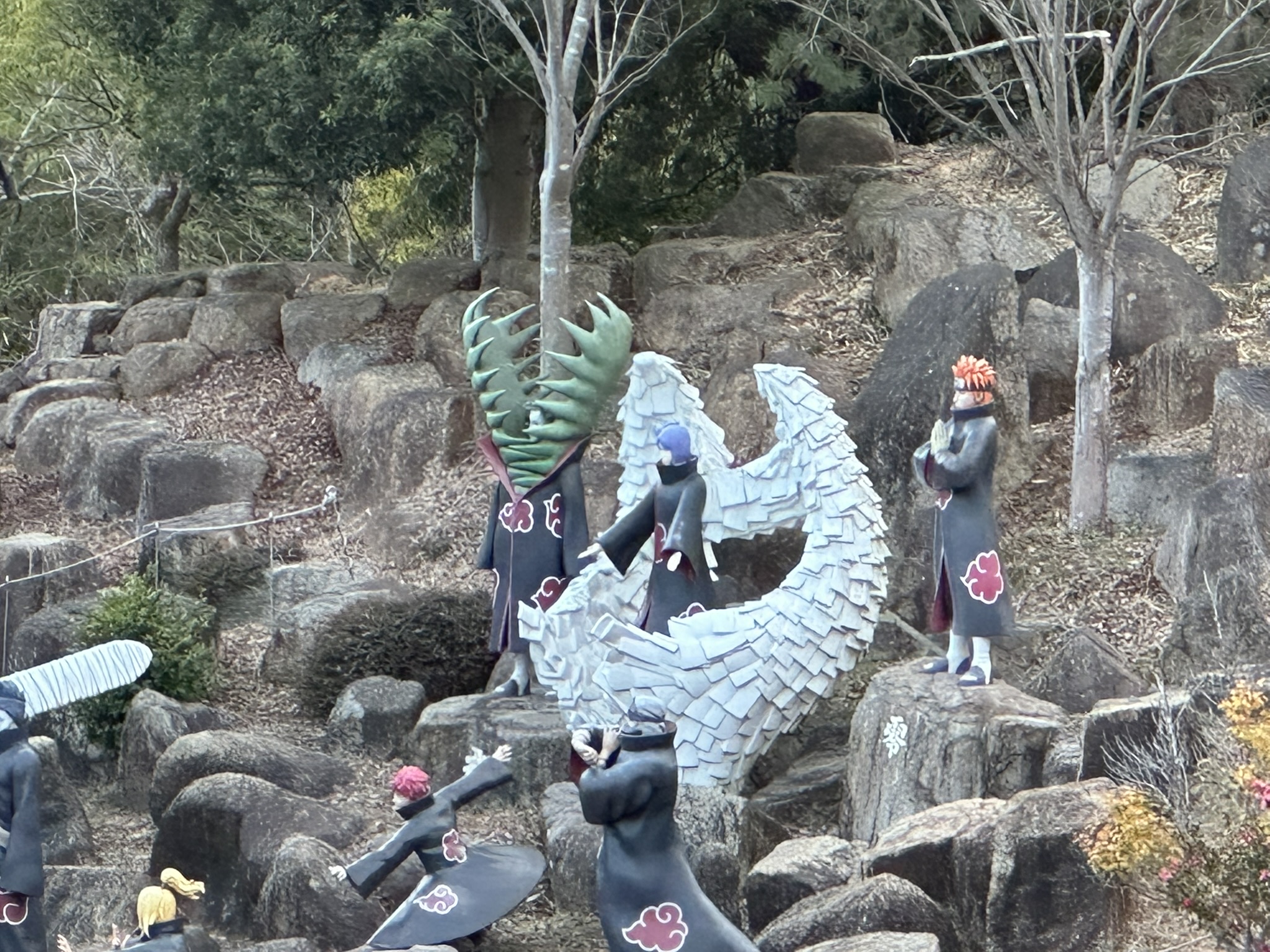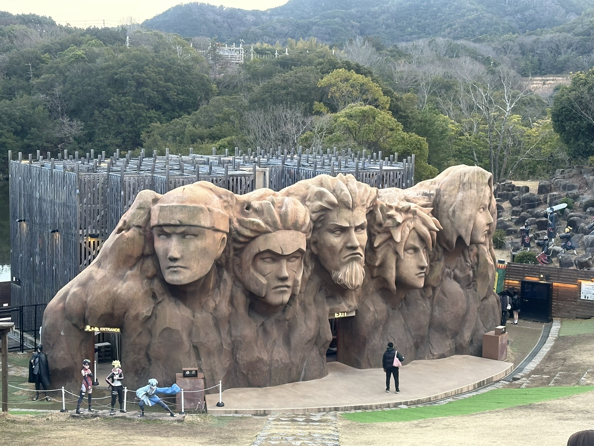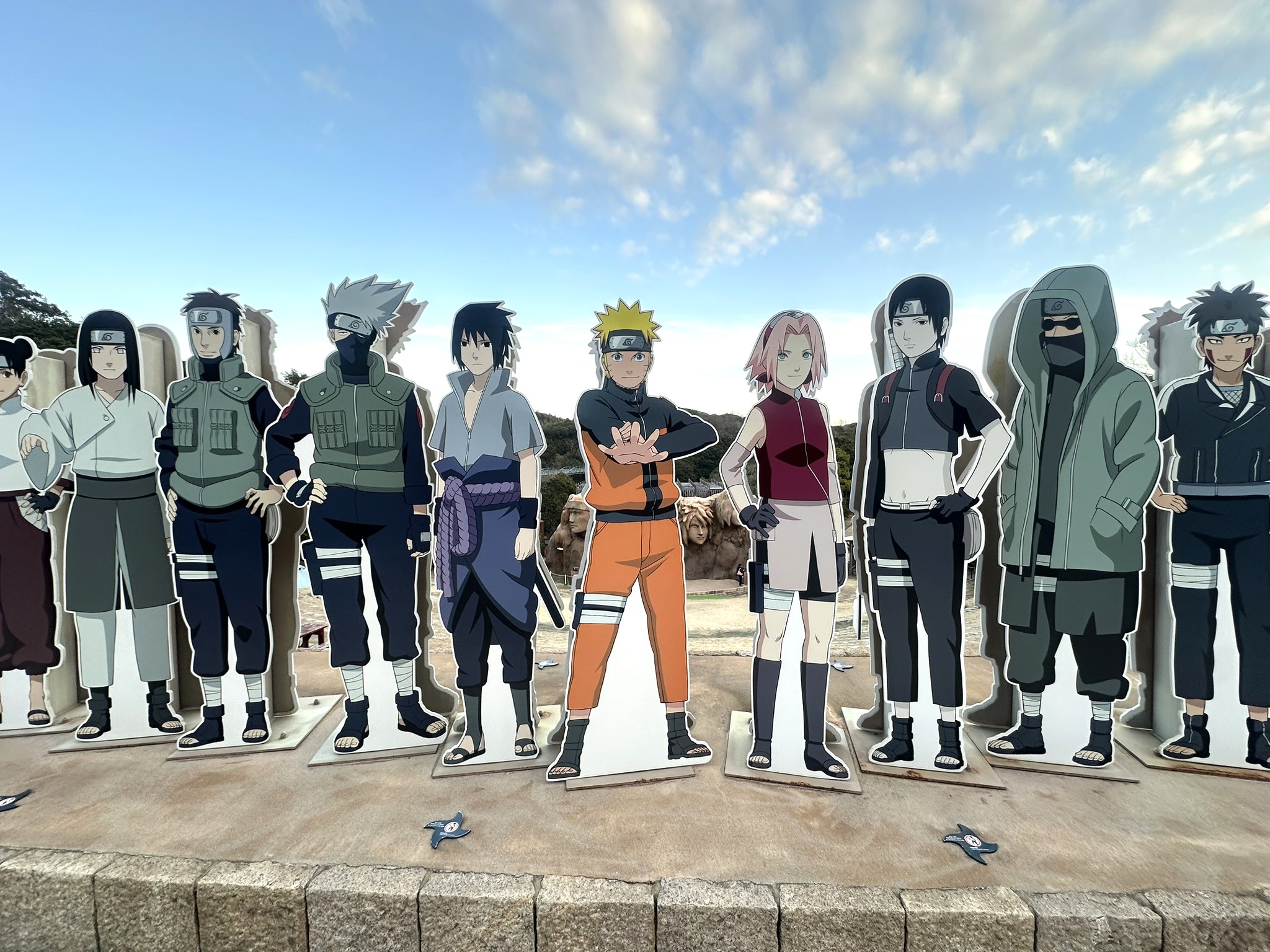 人気アニメ『NARUTO -ナルト-』と『BORUTO -NARUTO NEXT GENERATIONS-』の世界を体験できる「NARUTO & BORUTO 忍里」。園内には木ノ葉隠れの里をイメージした火影岩やキャラクター像が並び、まるでアニメの世界に入り込んだような雰囲気です。