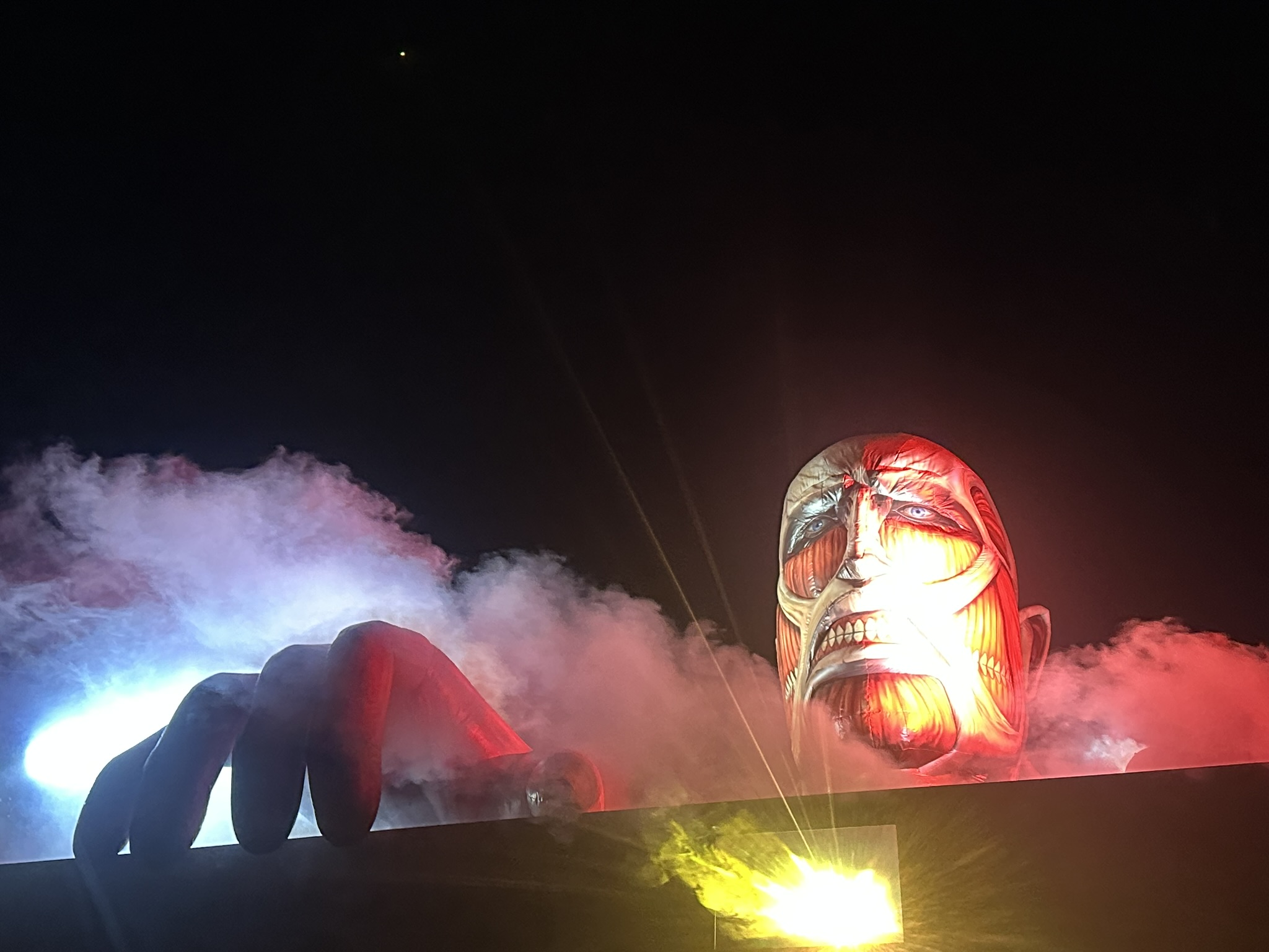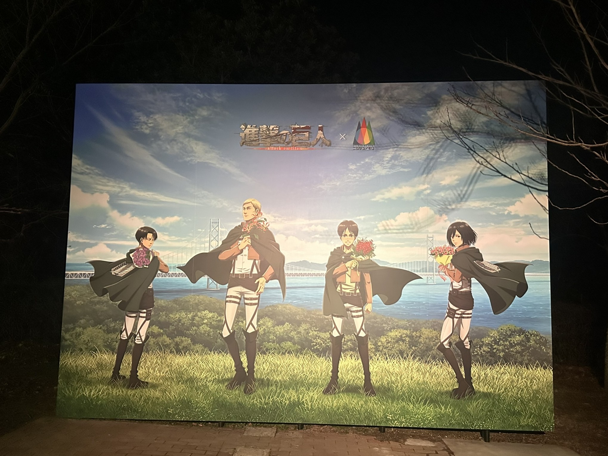 『進撃の巨人』のコラボイベント(2026年3月14日~12月13日)は、昼は園内を巡るスタンプラリーで作品の世界を体感でき、夜は約1.2kmのナイトウォークで迫力ある映像演出と音響を楽しみながら物語の中を歩くことができます。