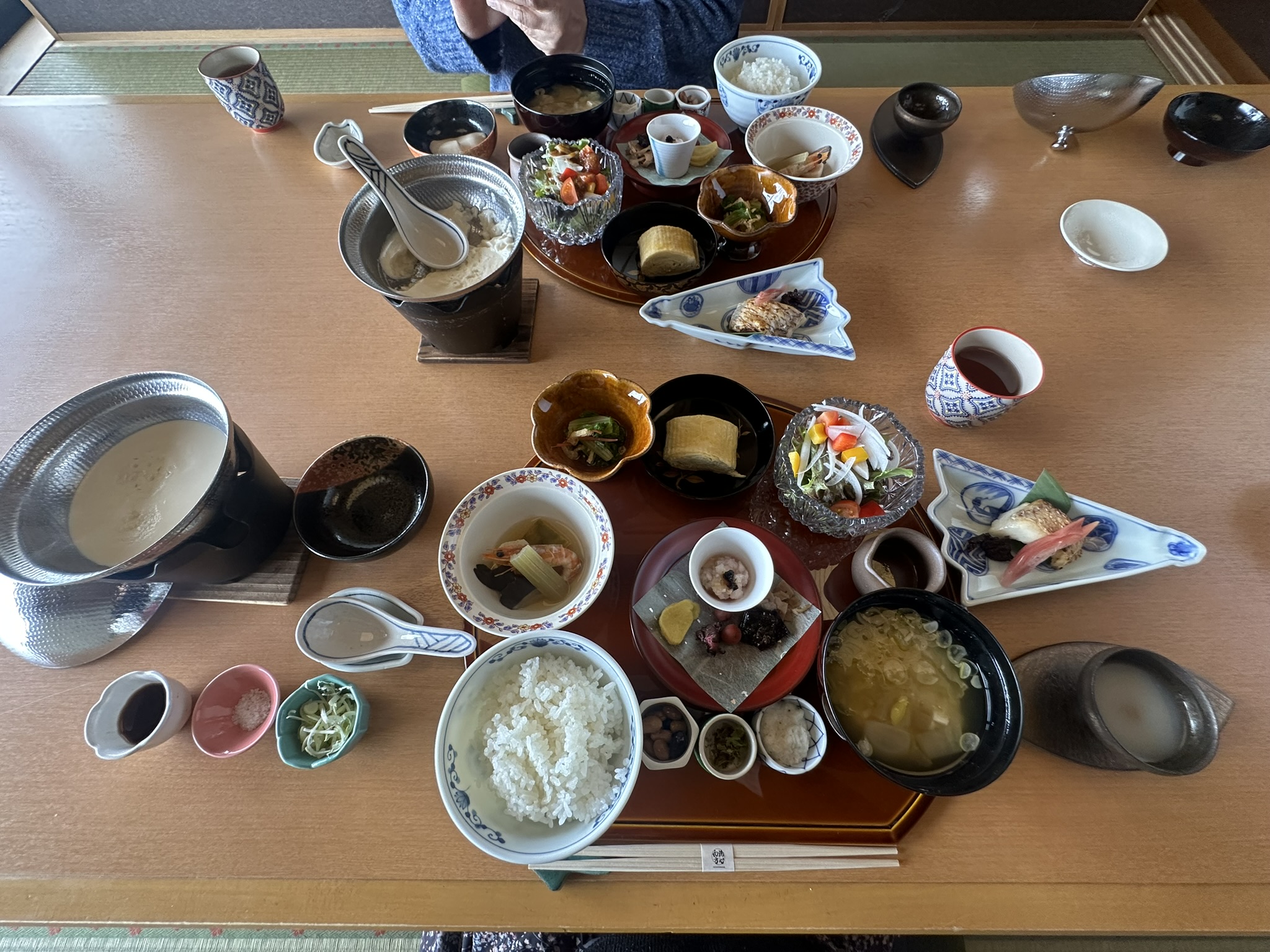 夕食は宿の食事処「和方」でいただきました。「和方」とは、日本の自然素材や四季の恵み、伝統的な知恵を活かした考え方で、体と心を整える料理を提供する場所です。