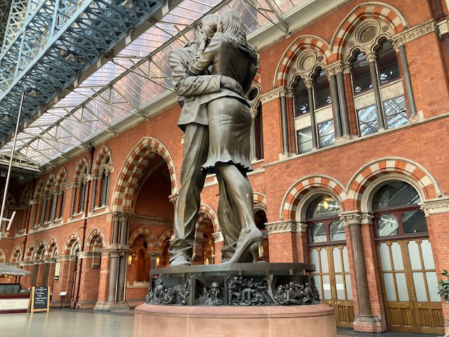 余談ながらこのカップル像は、ユーロスターが同駅に開通した記念に建立された「ザ・ミーティング・プレイス(The Meeting Place)」という作品。熱い抱擁を交わしているのは、出会えた喜びなのか、別れを惜しむ姿なのか・・・見る人によって違うものの、まさに「駅」という場所を象徴しています!