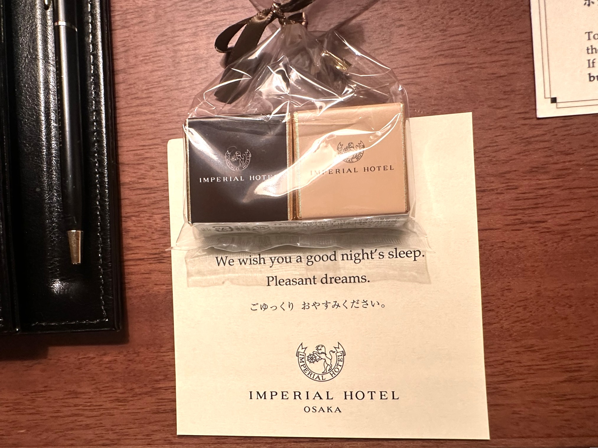 夕方にはターンダウンサービスが入り、室内が夜のくつろぎに向けて整えられます。その際にはメッセージとチョコレートが添えられており(内容は日によって異なるかもしれませんが)、そんな温かい心遣いも印象的でした。