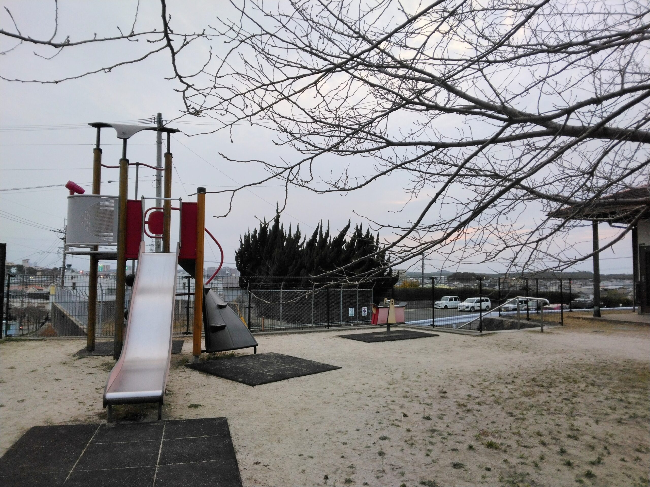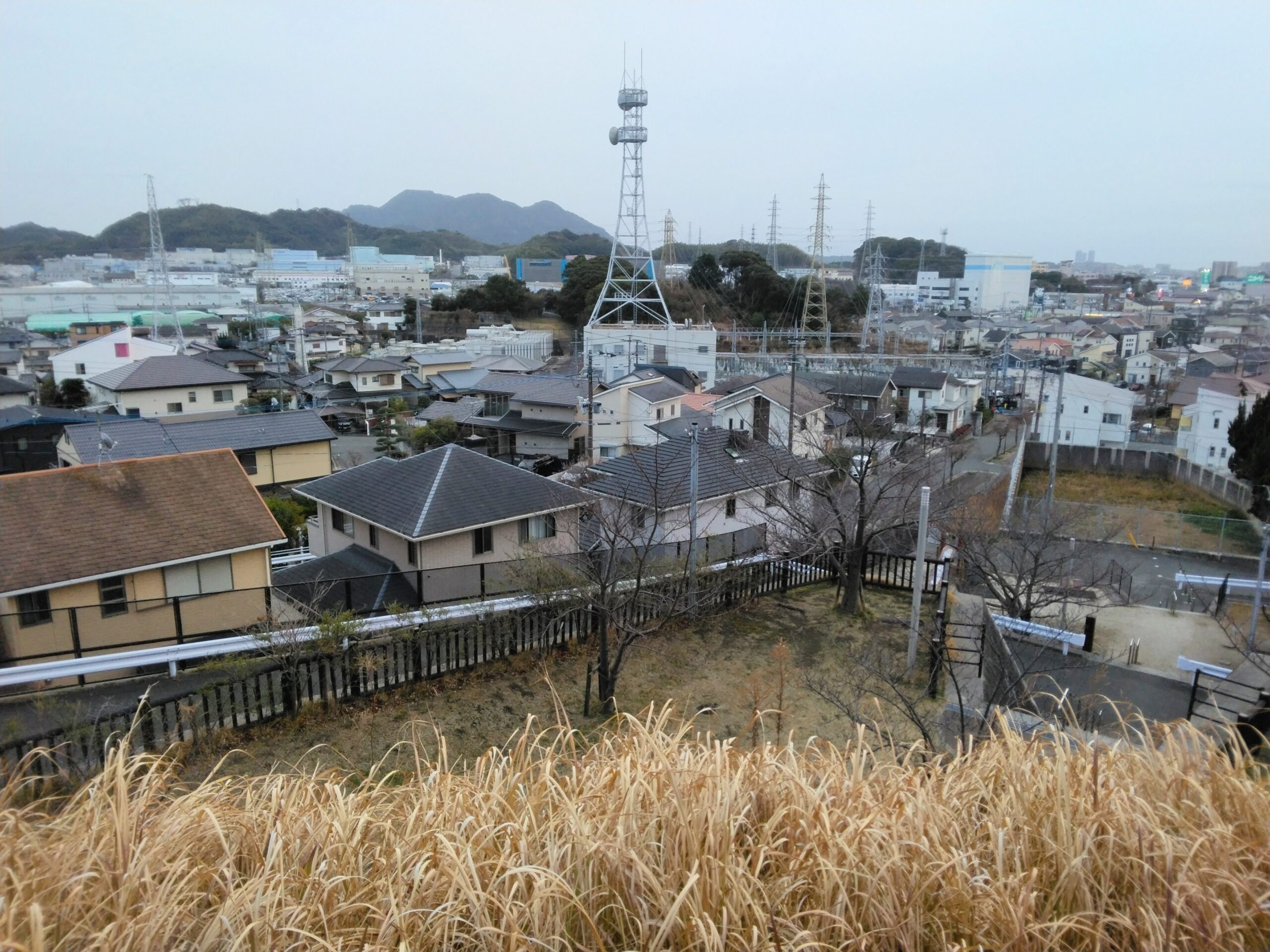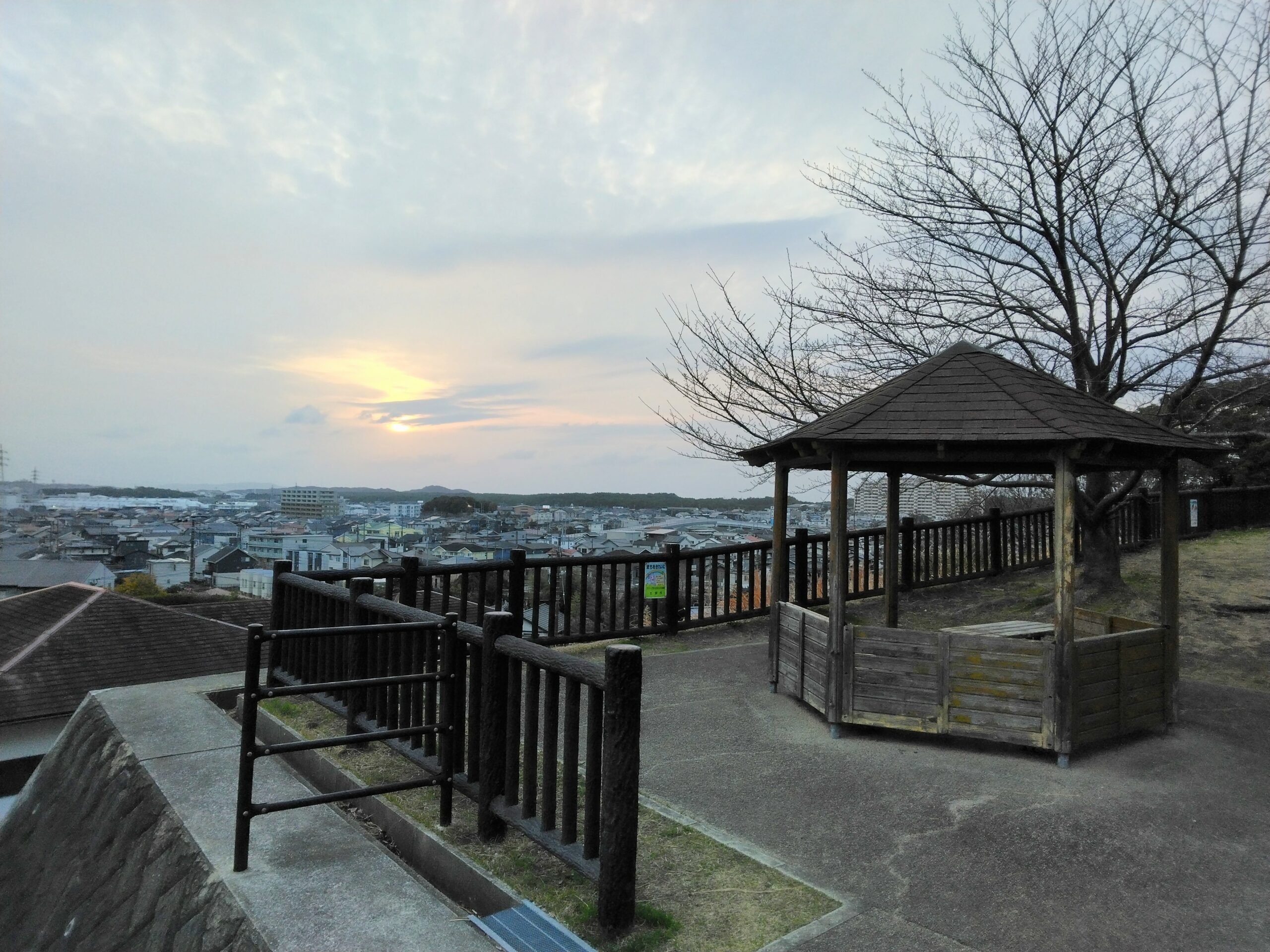階段を登ってすぐに東屋があり、ここからの風景が押さえておきたいポイントです。国道3号線が見えますが、車道の喧騒が幾分か軽減されるおかげでリフレッシュした気分になれ、街並みが目の前に広がるので、開放的な気分にもなります。