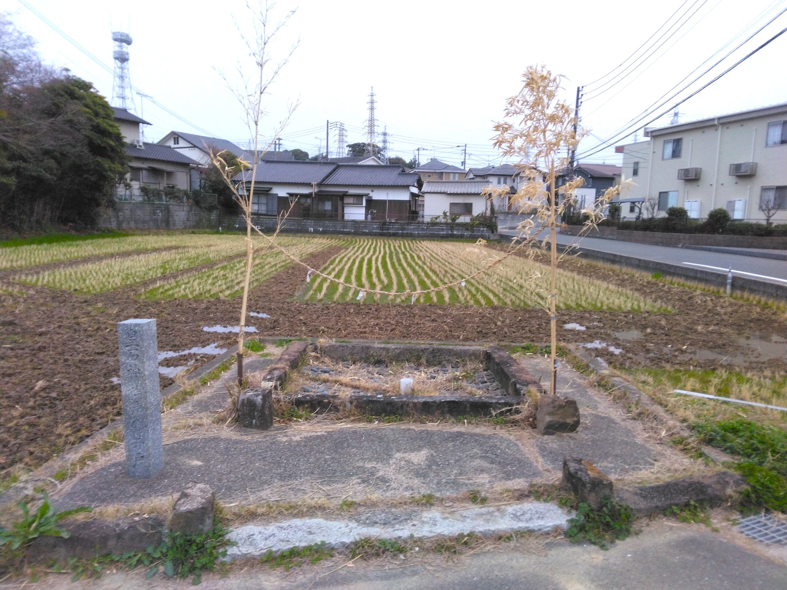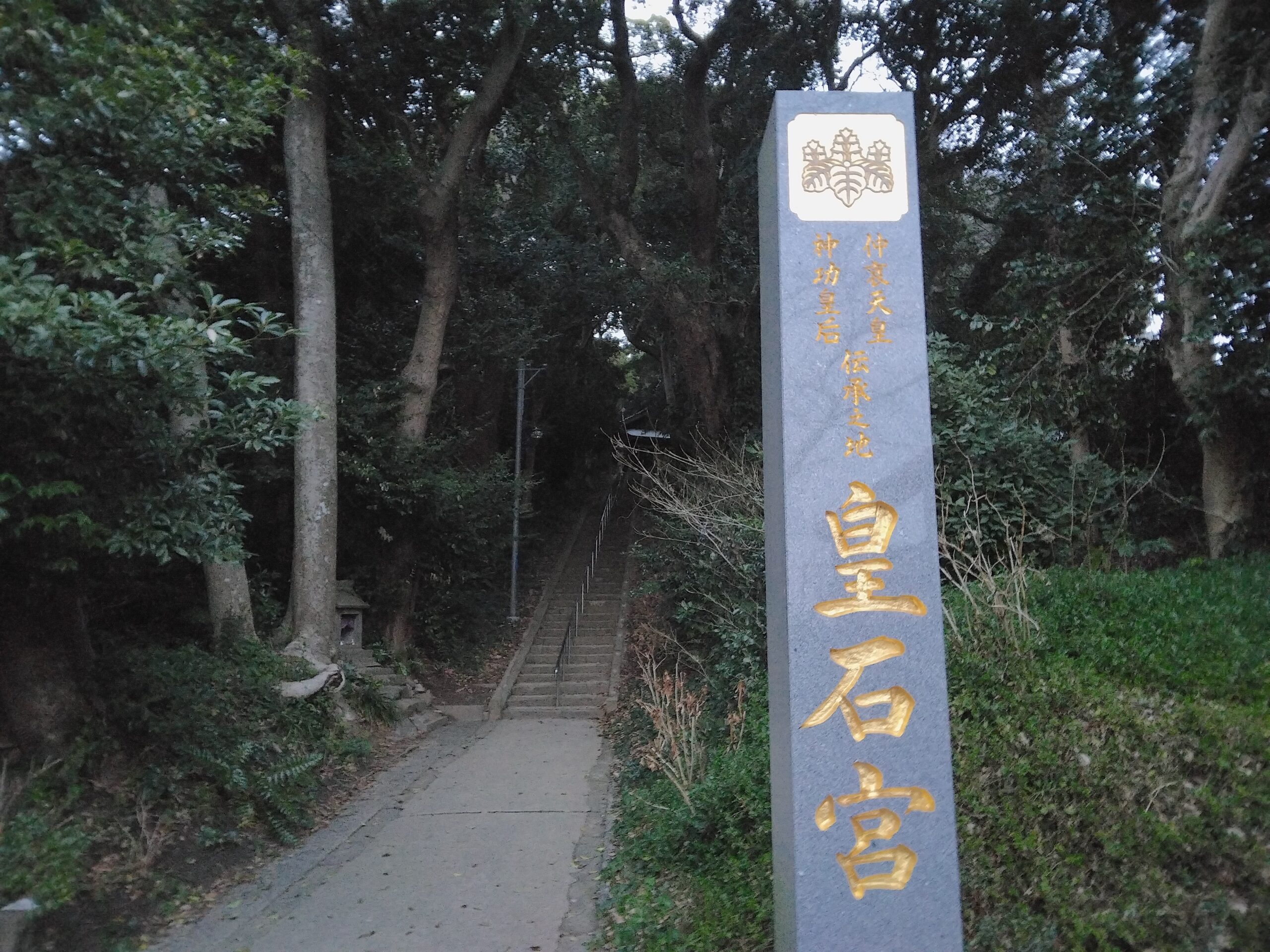 鹿部山公園から歩いて行けるところに、「皇石神社 沖の井戸」「皇石宮」「荒波神社」があり、イチョウやクロガネモチの巨木もすぐそばで観察できます。また、「皇石神社 沖の井戸」には、神功皇后が水を飲んだと伝わる井戸もありました。