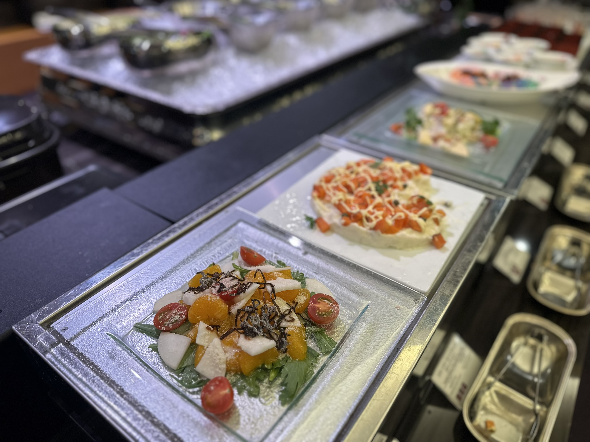 メイン料理を一品選び、前菜・スープ・パン・スイーツなど、約30種類のセミビュッフェを自由に組み合わせられるスタイル。