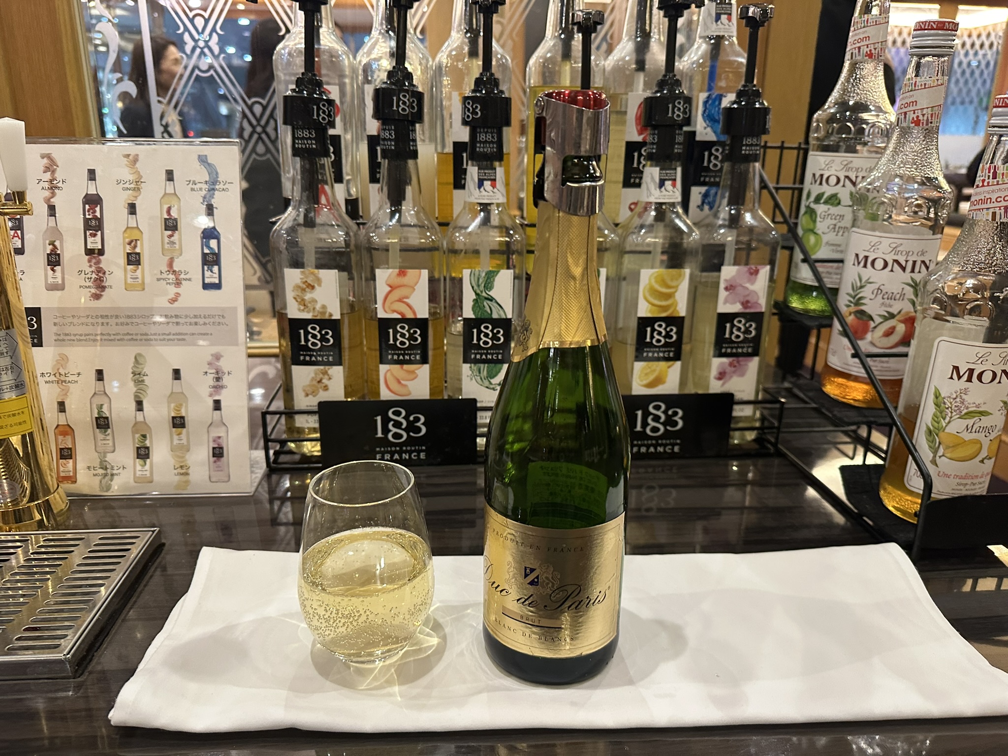 アルコールのフリーフローは別料金で約2,000円、ソフトドリンクバーは約300円。