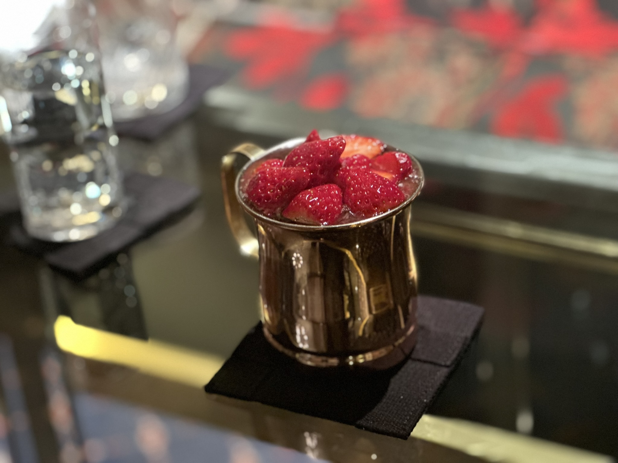 また、苺を使ったフルーティーなカクテルも用意されていて、見た目も華やか。女性にも人気がありそうな印象でした。