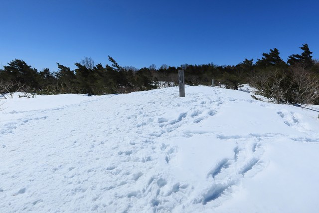 山頂直下の柱票脇から山頂へと向かいます。