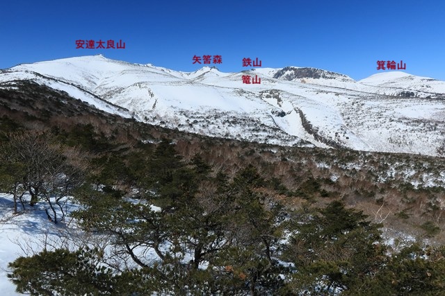 安達太良山の主峰とその北側に続く峰々を眺めます。