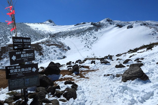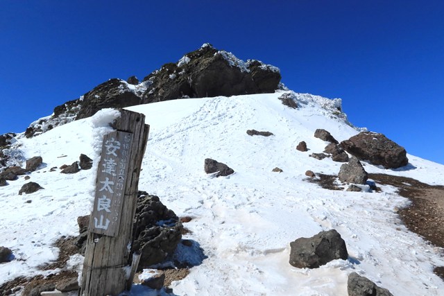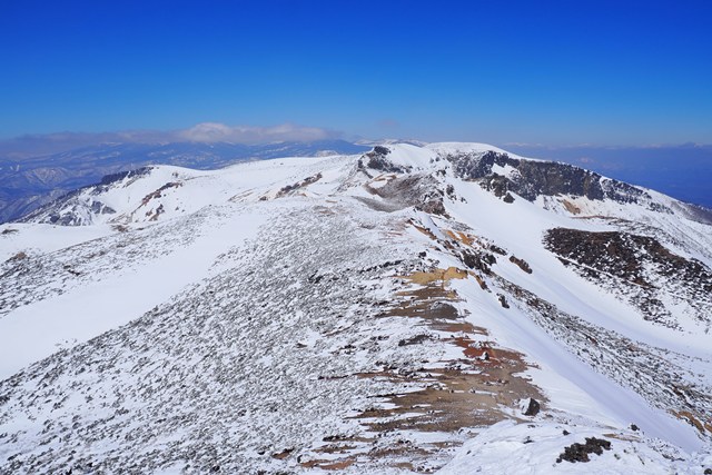 残雪期に突入した安達太良山を登ってきました。今回は、奥岳登山口を起点に山頂と爆裂火口を望む稜線を併せて周回します。
