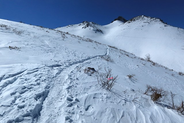 ゲレンデ奥から本格的な登山道へと入っていきます。