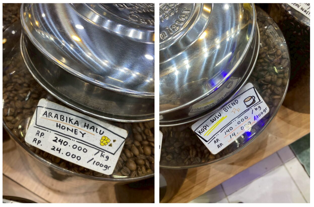 Pasar Santa では、コーヒー豆の購入方法も少しユニークです。