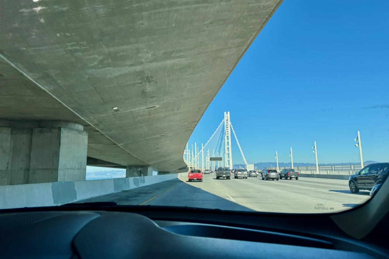 サンフランシスコからのアクセスですが、公共交通で行けなくはないものの、乗り継ぎが多く現実的ではありません。正直に言いますと、車一択です。午前中にベイブリッジを渡り、乾きはじめた大地を抜けていくと、倉庫群が次々と現れます。そして視界の先に現れる“巨大な箱”。それがAmazonのフルフィルメントセンターです。