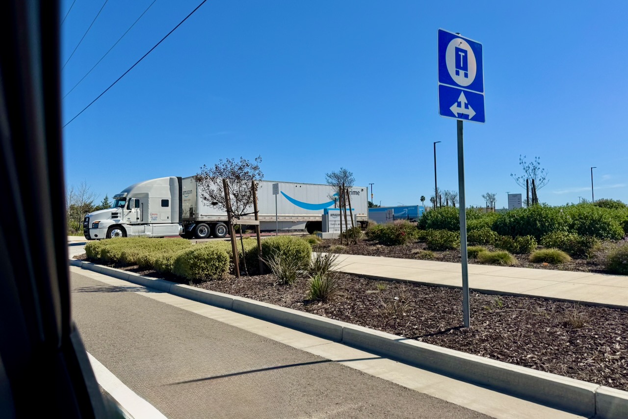 今回訪れたのは、サンフランシスコから内陸方面に1時間ちょっと、ベイエリアの物流拠点として知られるトレーシー(Tracy)。この一帯にはAmazonをはじめ多くの物流企業の巨大倉庫が集まっています。