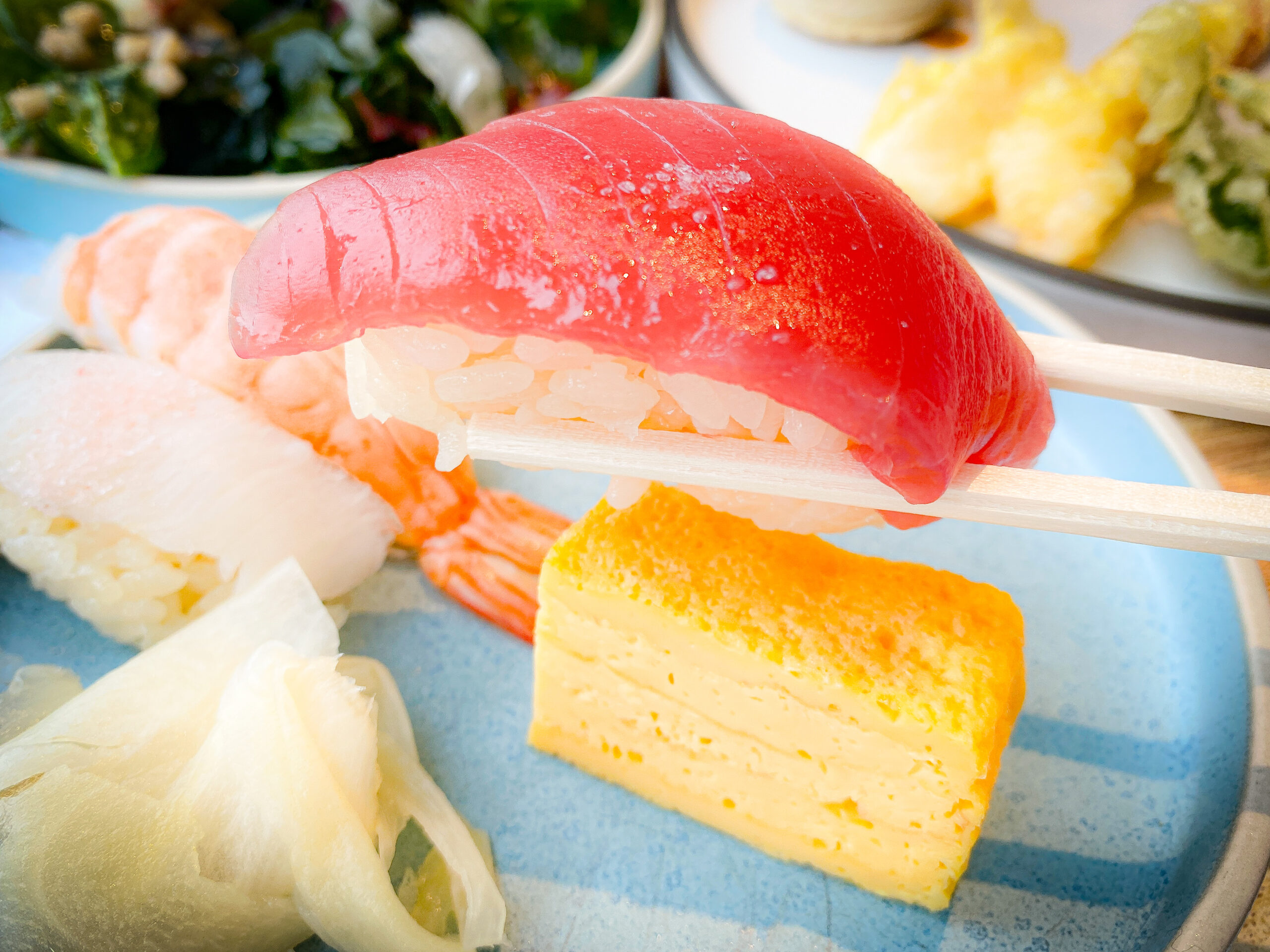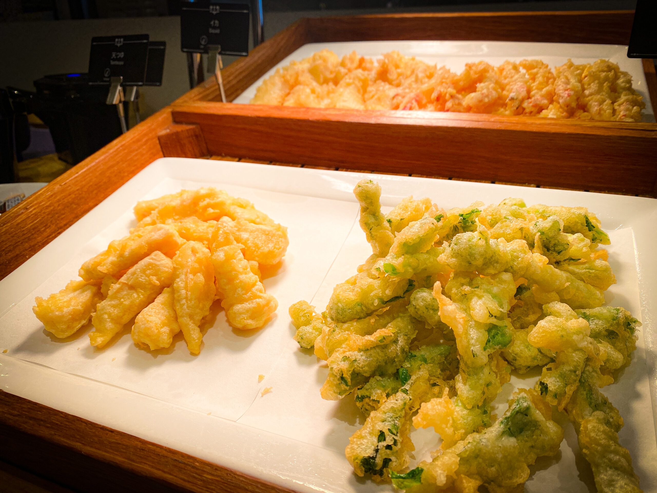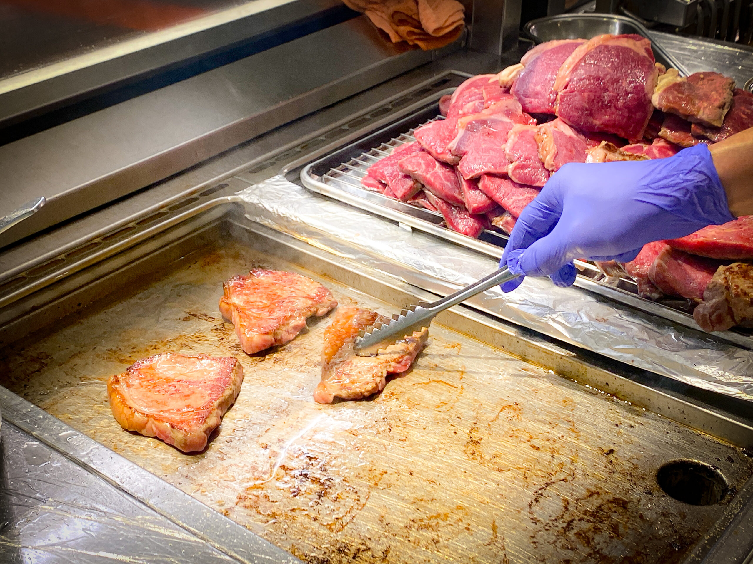 フェアのレストラン内には実演コーナーがあり、目の前でつくってくれるのが「サーロインステーキ」「日替わり天婦羅」「握り寿司」の3種類。
