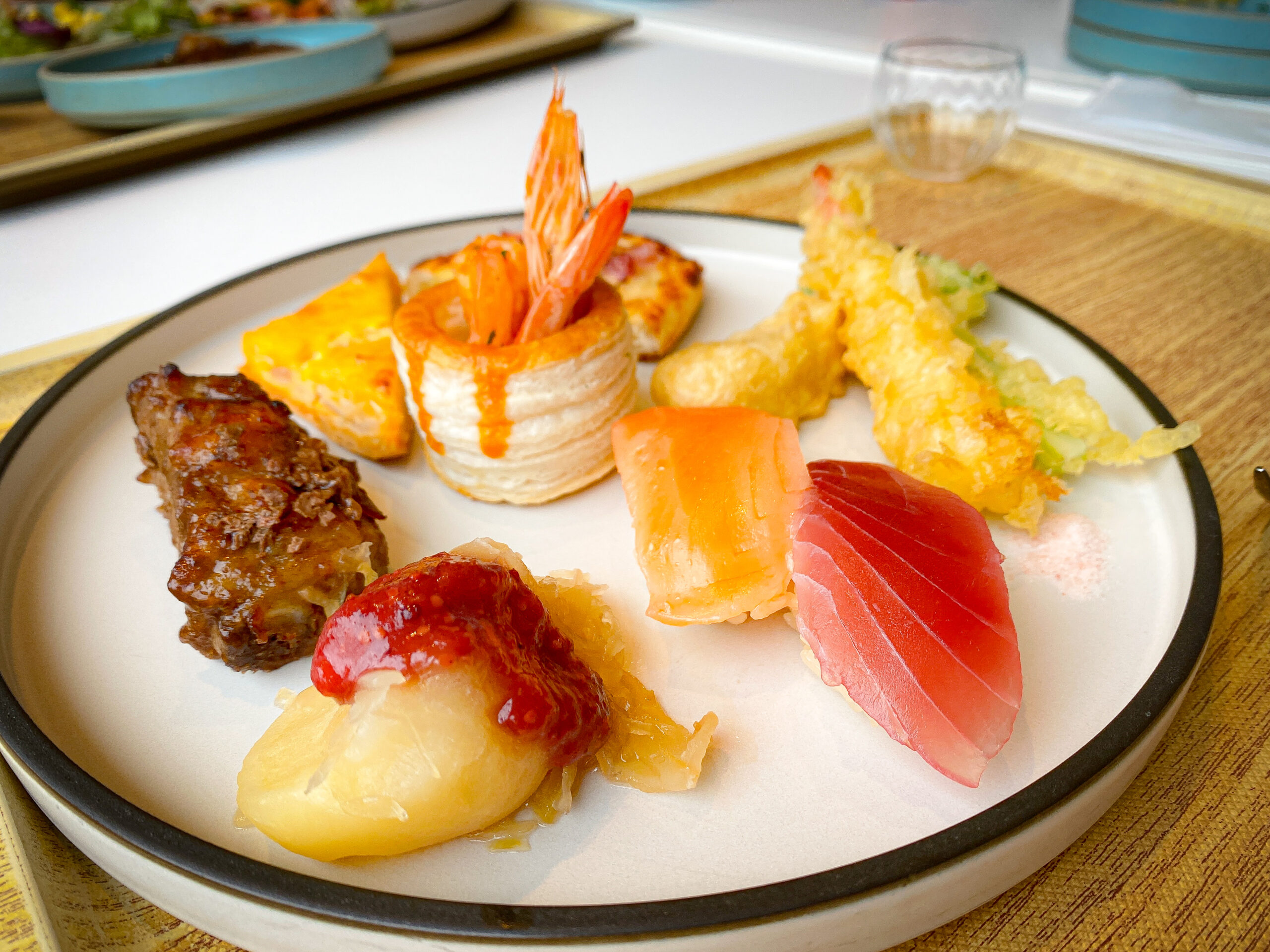今回のフェアテーマは「ストロベリーフェア~フランスグルメ紀行~」。メニューには、「サーモンクリビアック」や「ムールマリニエール」「ティアン プロヴァンサル」「自家製ブータンブランとマッシュポテト」「小エビのヴォル・オ・ヴァン オマールエビのビスクソース」など、フランスの伝統料理が並びます。筆者の一押しは、濃厚なソースが印象的な「小エビのヴォル・オ・ヴァン オマールエビのビスクソース」。昼間からワインを飲みたくなってしまいます。会場で、アルコールを飲みたくなった場合は、フリードリンクプラン(2,800円/人)を追加できるので、ぜひ美味しい時間を楽しんでみてください。