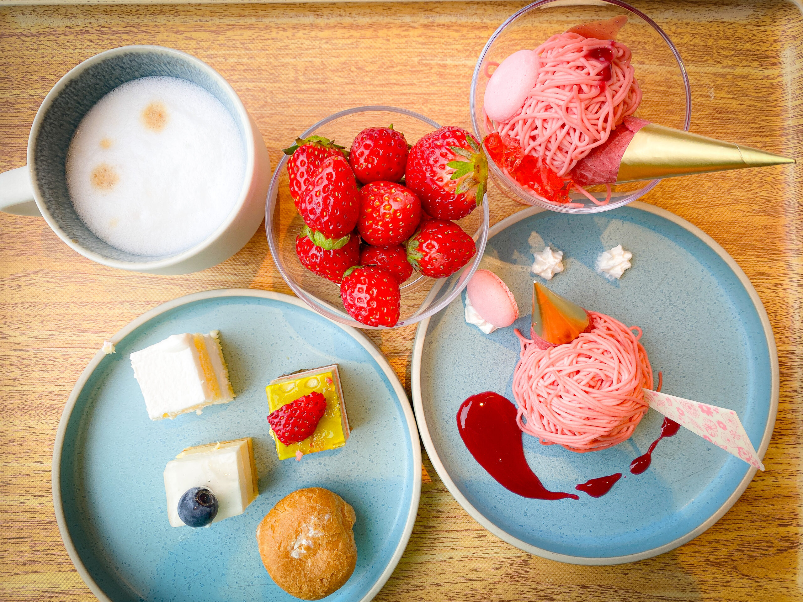 「フレッシュいちご」の他、「ルビーチョコレートフォンデュ」「ストロベリーモンブラン」「ショコラフレーズ」「パッションショコラ」「ピスタチオケーキ」など、いちごの華やかな香りや、絶妙な甘酸っぱさをさまざまなメニューで表現しています。