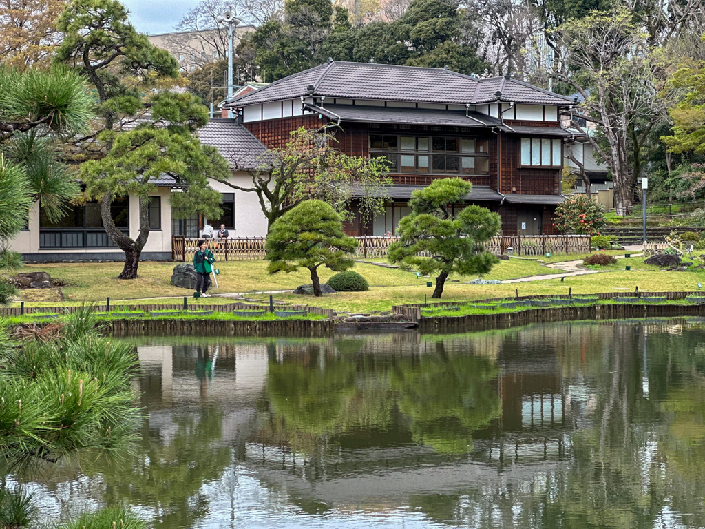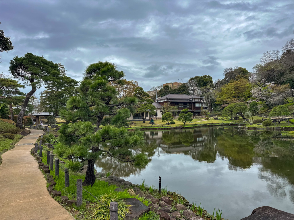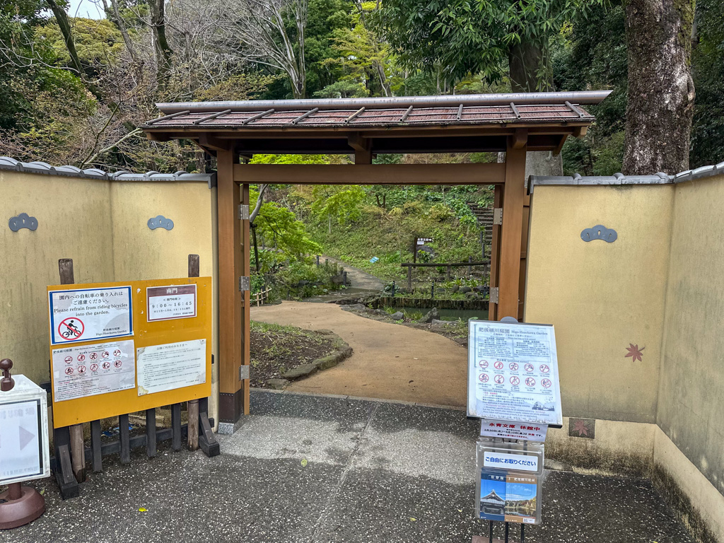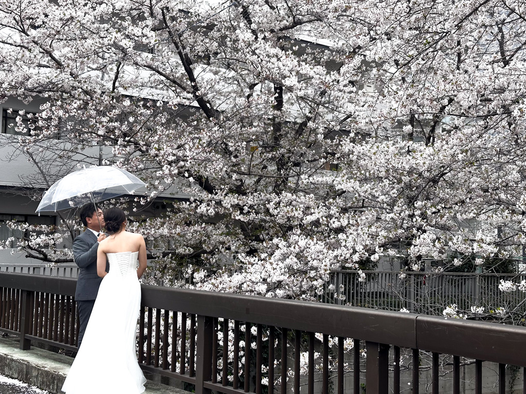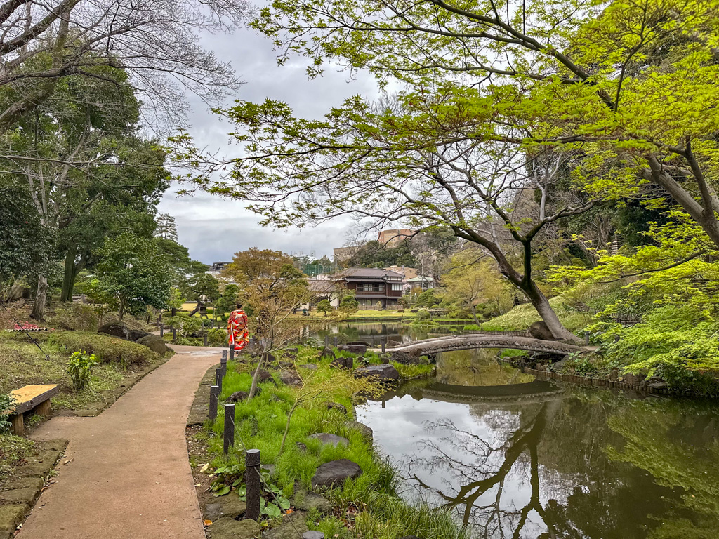 終点の駒塚橋の脇には肥後細川庭園があり外せません。桜に誘われて何組かのカップルがウエディングフォトを撮影していました。