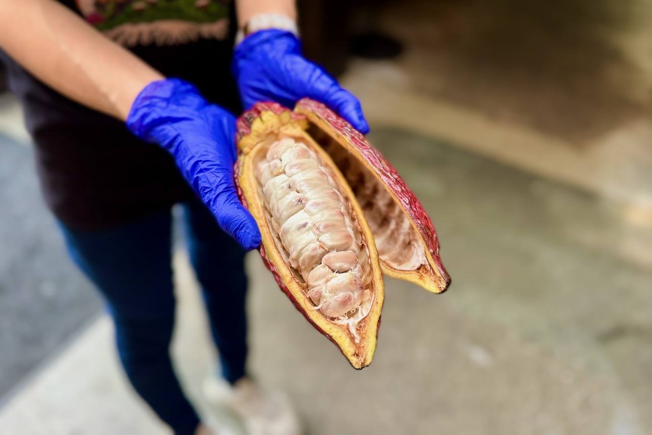 印象的だったのは、熟したカカオポッド(チョコの原料のカカオを含む青果)を見せてもらって中身の果肉・種子(カカオ豆)を試食。ライチみたいな甘酸っぱい味がチョコレートになるとは、目から鱗でした。