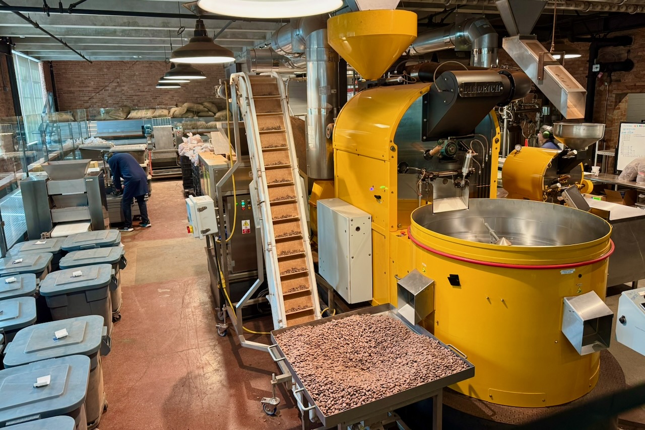 1923年に建てられた元印刷工場だった煉瓦造りのビルをリノベーションし、天井の高いインダストリアルな空間。外観からは想像できないほど、内部にはチョコレートの香りが満ちています。