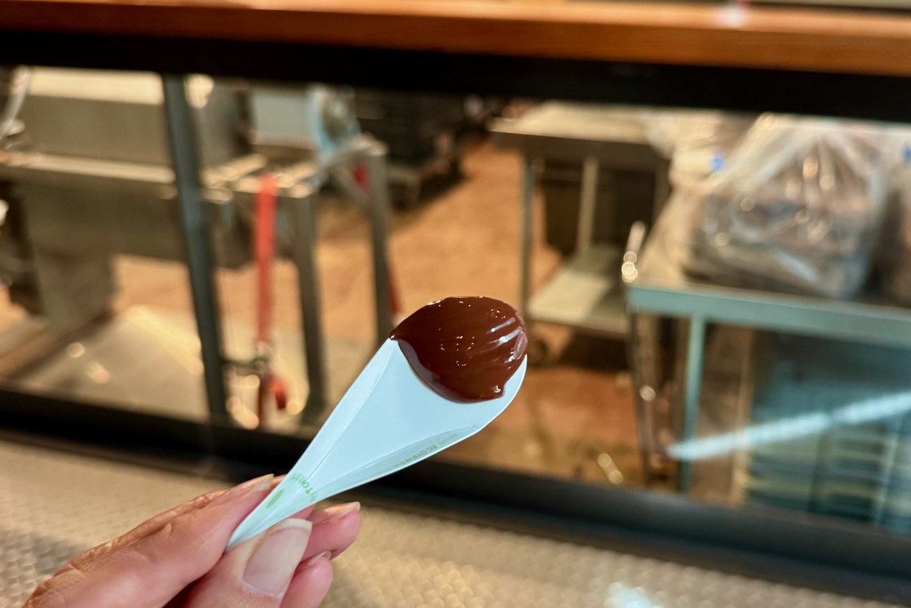ツアーの中では、単一産地(シングルオリジン)のチョコレートの試食も行われます。フルーティーな酸味やスモーキーな余韻など、同じ“チョコレート”とは思えないほどの違いが現れます。「味覚に自信がなくても分かるくらいよく分かる」と参加者の方が笑っていました。