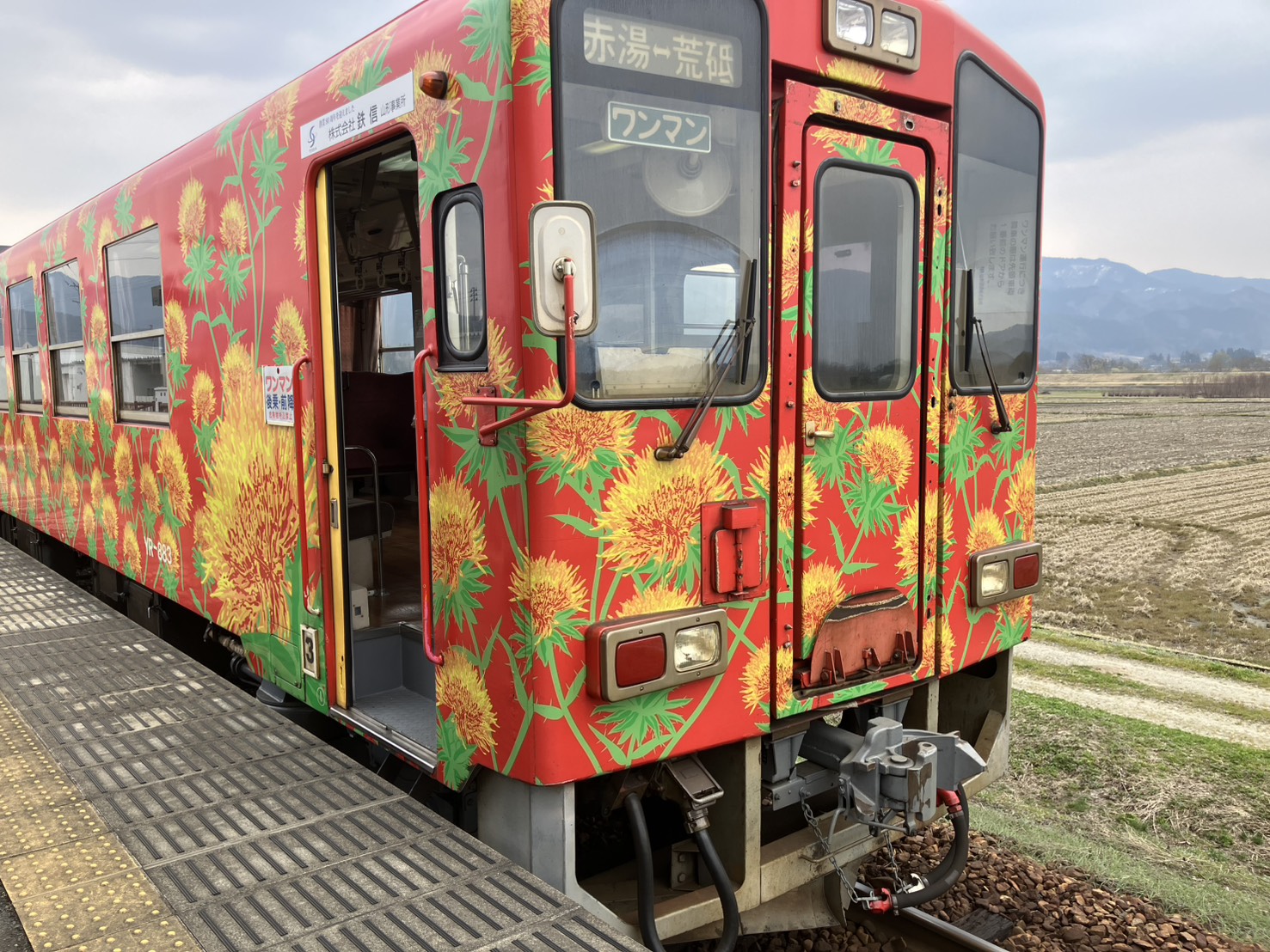 線路の上を走るのは、置賜の風景にパッと花を添える色鮮やかなラッピング車両たち。沿線自治体のキャラクターや四季の草花が描かれた車両は、見かけるだけでも心が弾みます。時にはレトロな雰囲気のイベント列車や、地元のワインやスイーツを楽しめる特別な車両と出合うことも。一両編成の小さな列車が、緑の田園風景や真っ白な雪原をトコトコと進む姿を想像するだけでも、まさにこの旅の主役と呼ぶにふさわしい愛らしさです。