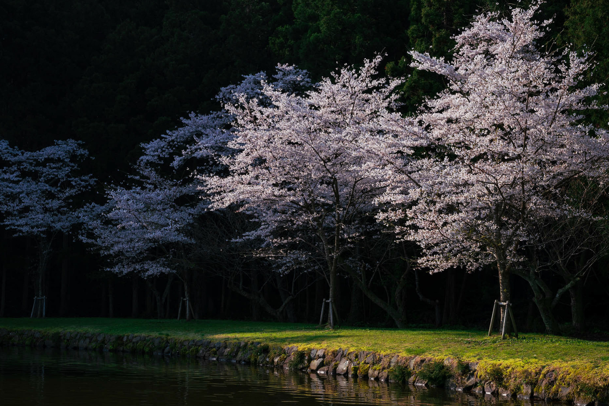 秋田県内で最も早く桜が開花する場所として知られるのが、にかほ市にある「勢至公園」です。例年4月中旬になると、園内にある約1000本のソメイヨシノが一斉に咲き誇ります。この公園を訪れるなら、清々しい空気と柔らかな光に包まれる早朝の時間帯が特におすすめです。昇り始めたばかりの朝陽に照らされた淡いピンクの花びらが、静かな観音潟のほとりで輝く様子は、まさに息をのむような美しさです。