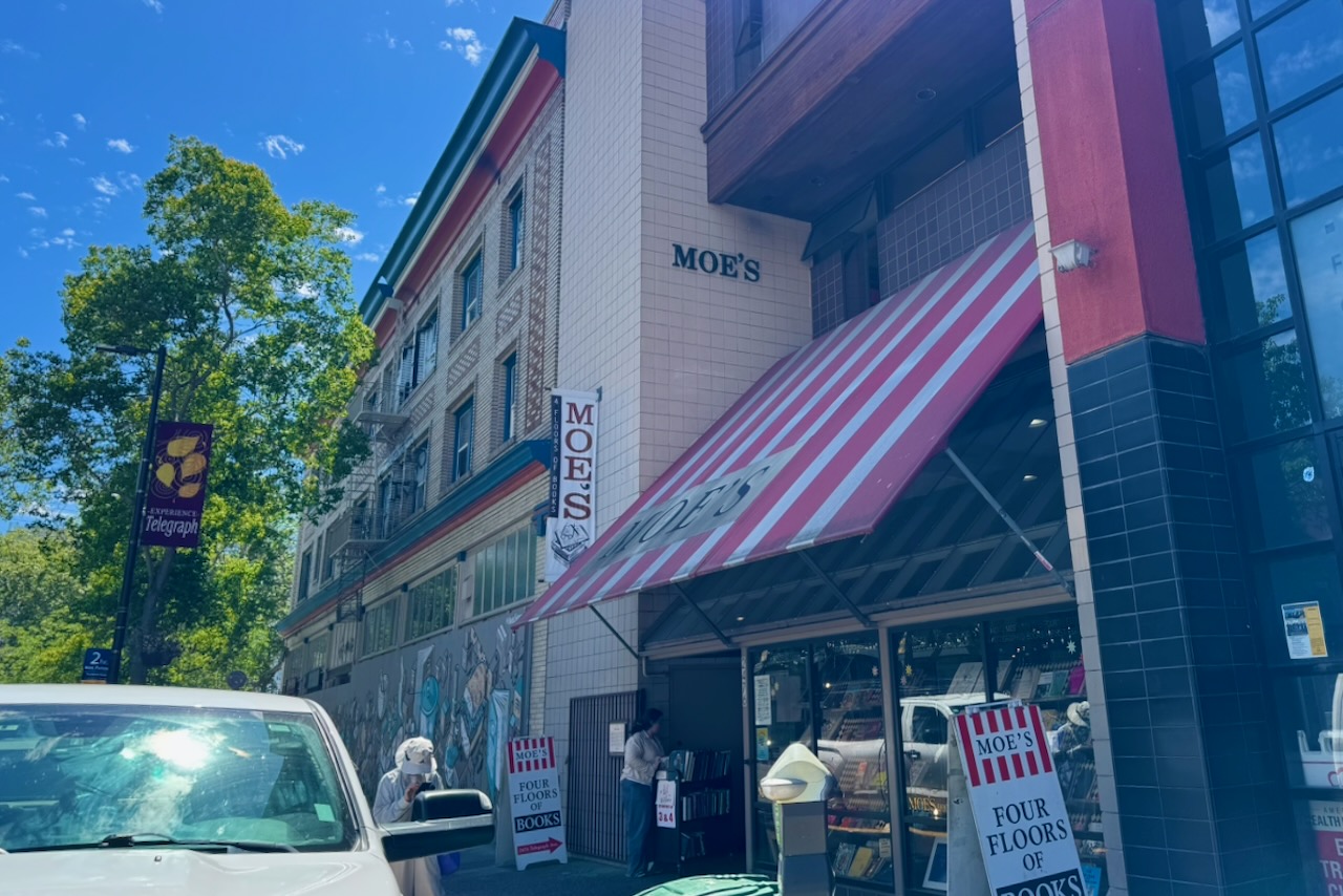 散策の締めくくりは、1959年創業の独立系書店で愛書家の密かなる聖地「モエズ・ブックス(Moe’s Books)」。新品と古本が混在し、哲学書から現代思想、サブカルチャーまで幅広いジャンルが約20万冊以上。カートにも本がどさっと乗っかり、狭い通路をとおり書棚を眺めるとこの街の知的土壌の奥深さを実感します。ここで”紙の本”を片手に自由を感じたらあなたも立派なバークレーの一員です。紅白のシェードが目印。