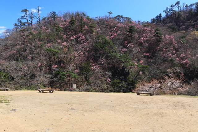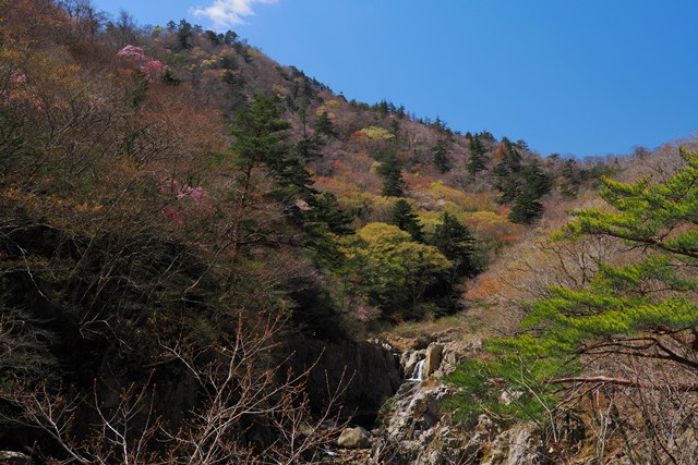 籠場の滝の近くでも所々にアカヤシオの群生が見られます。