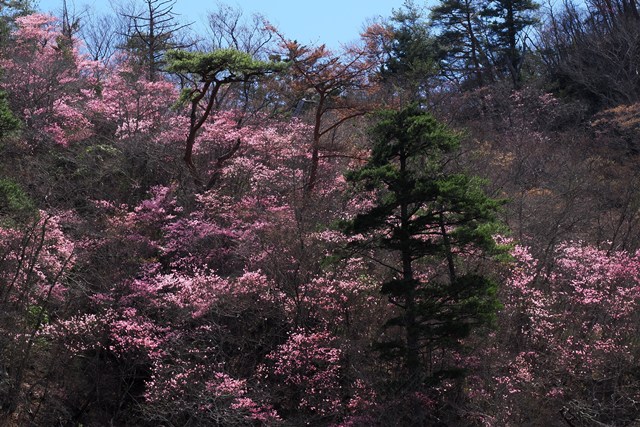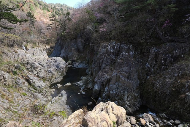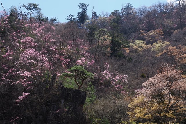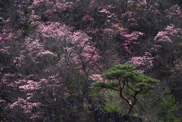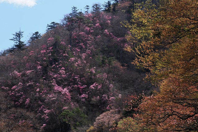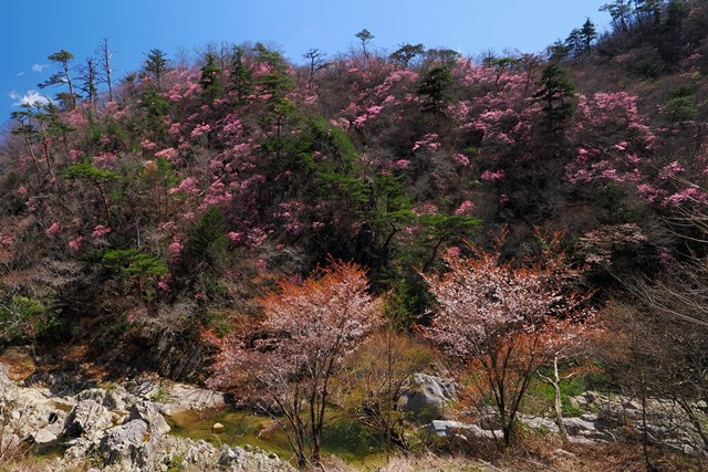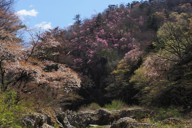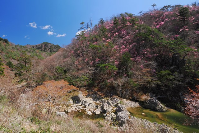【福島】渓谷を桃色に染め上げるアカヤシオ@いわき市