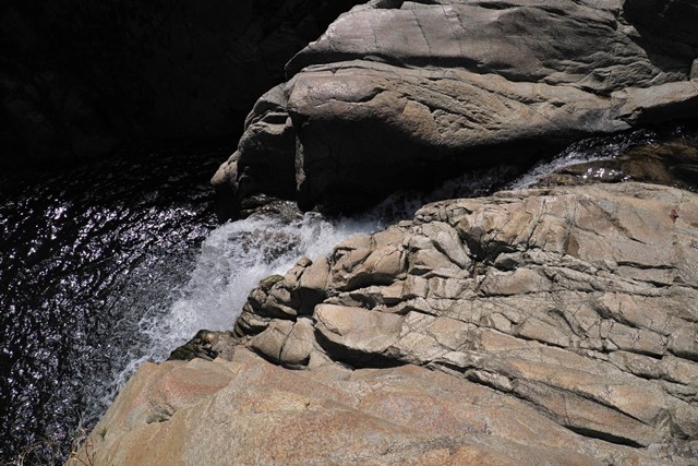 籠場の滝付近より下流側は、荒々しい印象の岩場が続きます。