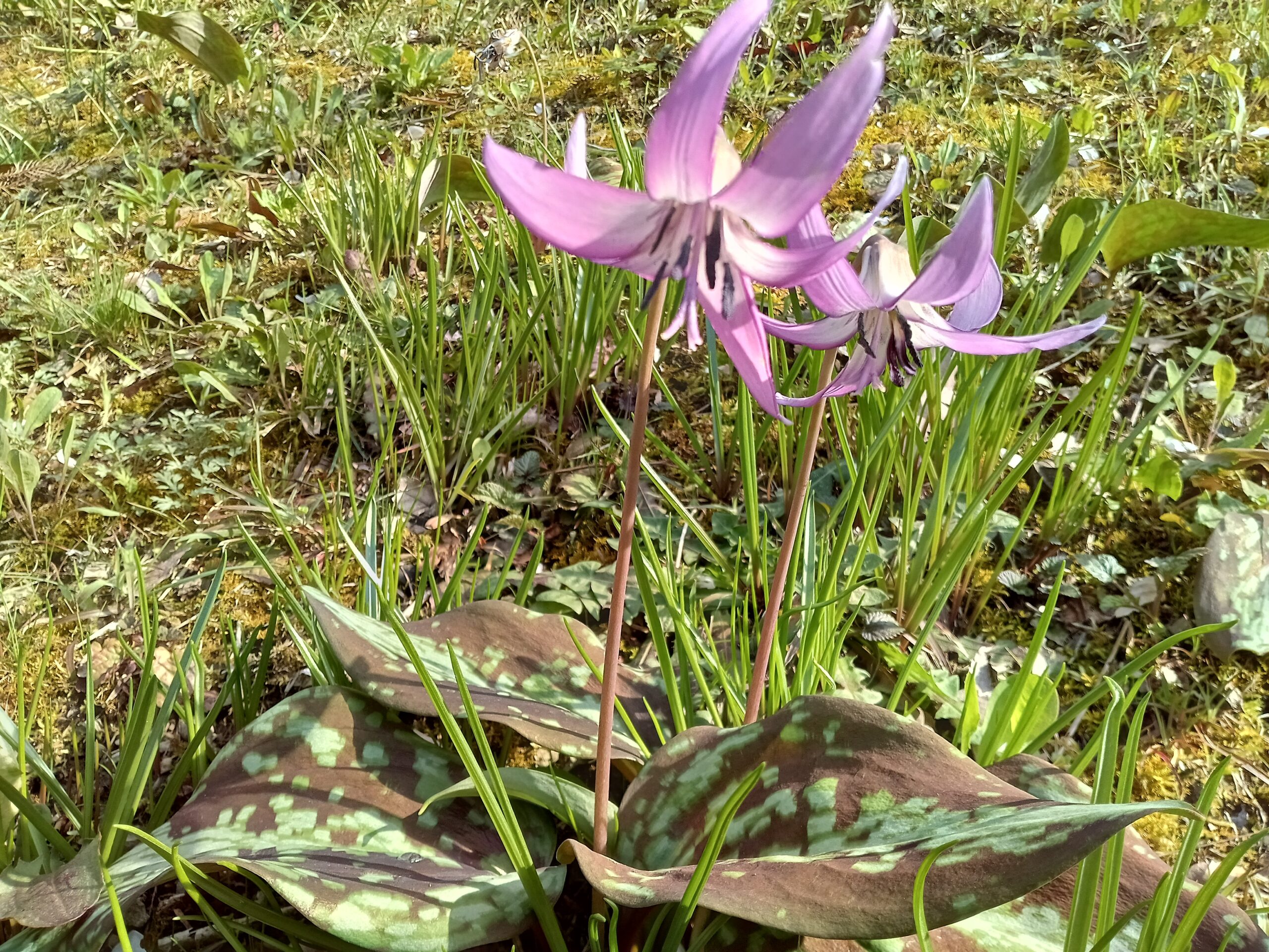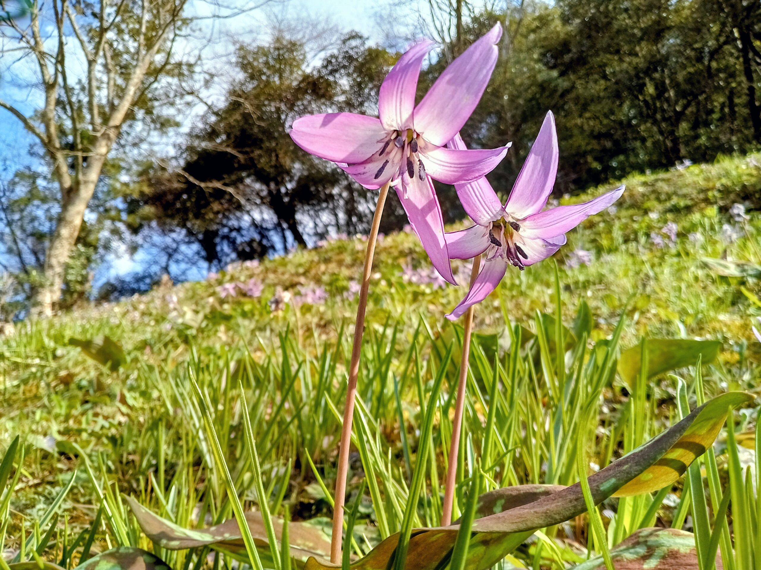 今年も多くのカタクリが咲いています。驚いたことに、以前は一本しかなかった観察道が二本に増えていました。群生地が広がっているのは嬉しいことです。