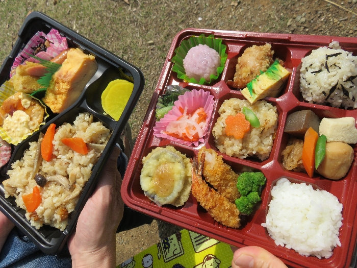 菊池市(きくちし)にある「道の駅泗水養生市場」で買ったお花見弁当をいただきま~す。こちらの道の駅は”道の駅弁”が有名ですけぇ、お出かけの際は是非ご賞味ください。